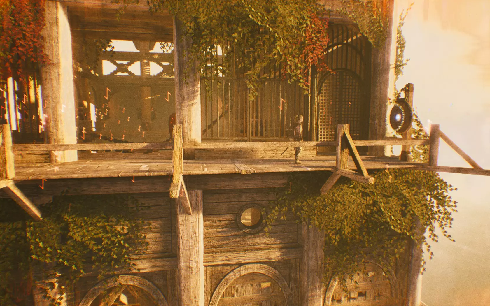 用R符文打开门后,跑到瀑布下方并穿过横梁,看到“栅栏”时向右转。39)