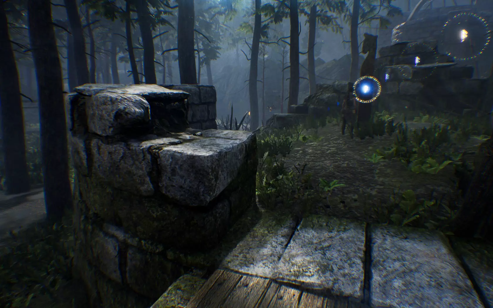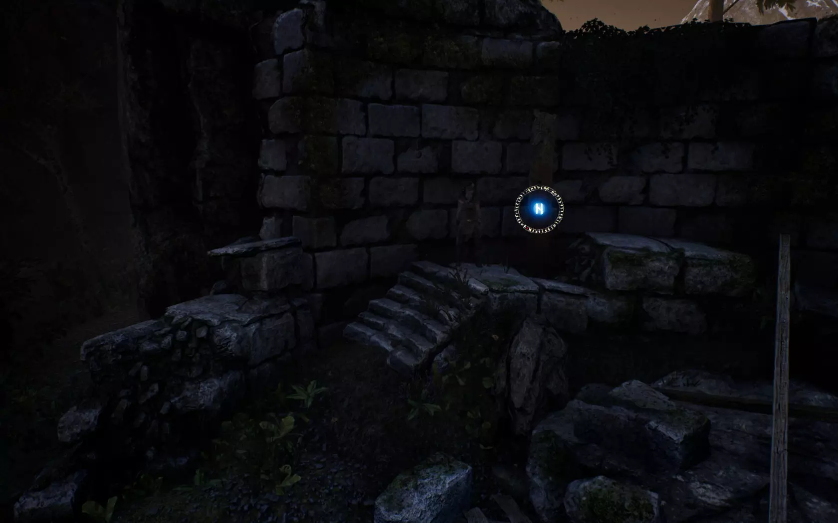 这是一块知识石碑,石碑本身可能有所不同,但上面的符文始终是一样的。 这个明亮的圆环会为我们提供关于任务的重要信息。 每个符文都代表一块知识石碑,总共有44块。如果符文是红色的,说明它尚未被发现;如果是白色的,则表示你已经发现了那块特定的知识石碑。从截图中可以看到,我在第一次游玩时收集了除一个符文外的所有符文。 我用了“发现”这个词,但实际上你**必须与石碑互动**(按住E键直到音频开始播放且符文变色)。 现在你可以看到,圆环中的符文并非都是连续的,有时它们之间会有一个点,就像这样: 符文 符文 . 符文 符文 符文 符文 . 符文 符文 这一点非常重要,它用于分隔游戏中的地点/区域/关卡!这意味着现在你可以知道自己是否已“完成”某个特定区域,也能了解该区域有多少个符文石(例如第一个区域有4个符文,所以需要寻找4个符文石)。 另一个要点是,戒指上的符文是按顺序排列的(除了一两个例外)。因此,如果你遇到的符文顺序是白色、红色、白色,那就说明你遗漏了一个,应尽可能回溯寻找。 区域内的符文/符文石是按顺序排列的,也就是说在“符文 符文 符文 符文”这样的序列中,符文是有序的,但不同序列(或区域)之间没有固定顺序。所以,如果你遗漏了一整个序列也不必慌张,这是因为你可以按不同顺序探索不同区域。只有当你在某个序列中遗漏了一个符文时,才需要留意,就像我前面提到的那样。 好了,我们可以开始正式的指南了。 ### 符文石位置 [第一部分] 1)