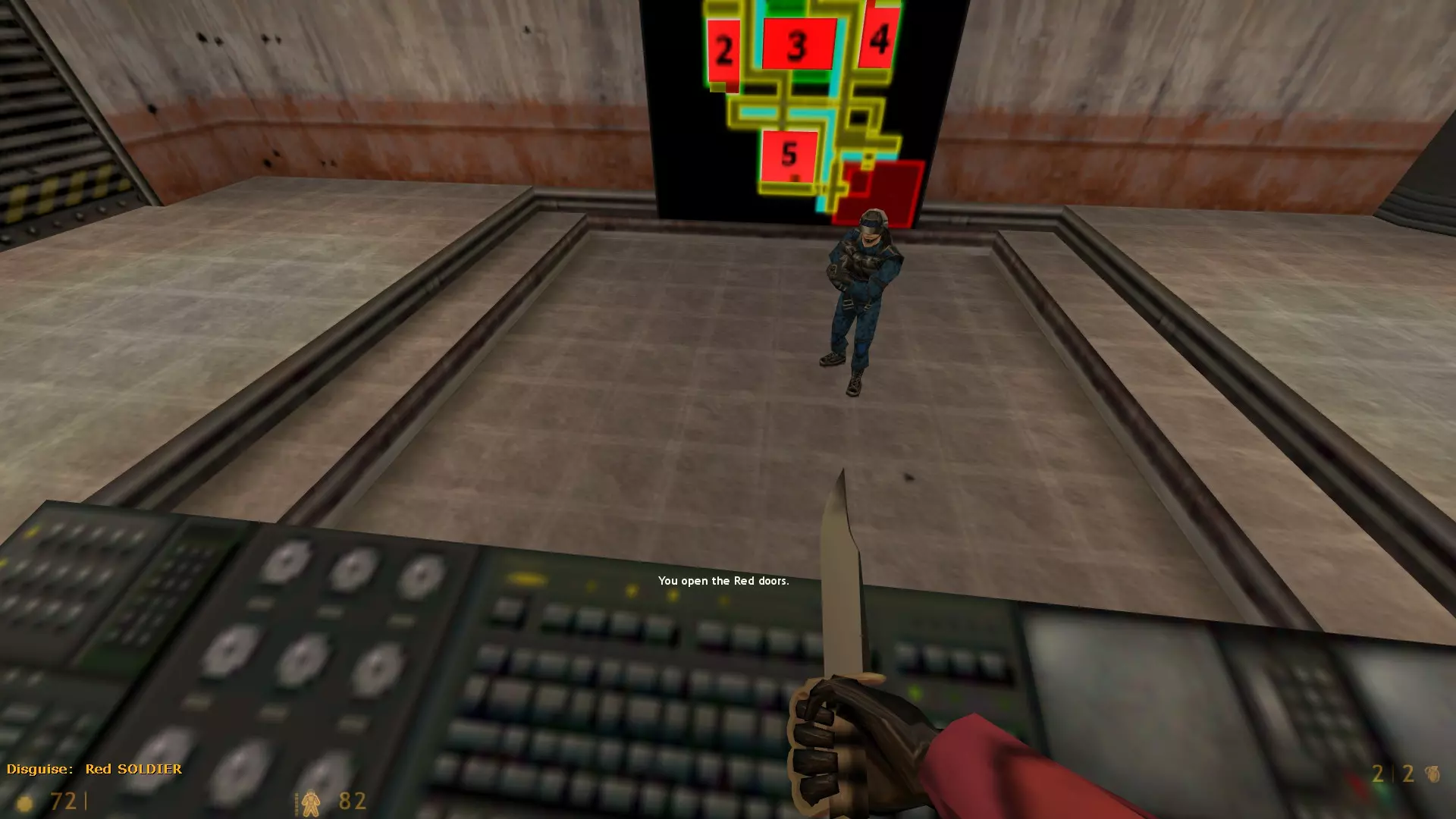 当你作为间谍身处指挥中心内时,可以使用电脑控制台打开基地的所有门,这对你们队伍的爆破手进入那里很有帮助。