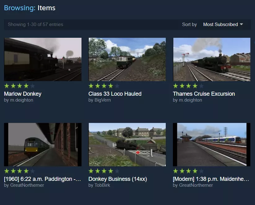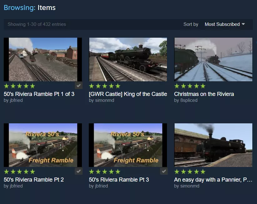### 如何查找链接 要找到某条线路的“场景”链接,只需在以下网站输入线路名称: TSC Routes & Scenarios [www.railsims.com] 找到线路后,右键点击“Scenarios”(场景)一词并选择“复制链接”。将此链接粘贴到以下代码示例中显示“LINKURL”的位置。 #### 代码使用方式 - **邮件和社交媒体**:使用如下代码: <a href=LINKURL> 此线路的创意工坊场景 </a> - **Steam平台页面**:使用如下代码: [url=LINKURL] 此线路的创意工坊场景 [/a] 链接现已准备就绪。 ### 链接使用示例 以下是官方线路“Riviera Line in the Fifties”(五十年代的里维埃拉线)的链接实际效果: Workshop Scenarios for This Route 点击上述链接即可试用!你会发现所有结果都仅适用于在该特定路线上运行的场景,并且这些结果是按订阅者数量排序显示的。