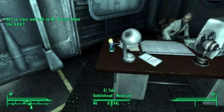 注意:你只有两次机会获取这个摇头娃娃。它出现在游戏非常早期的阶段。要么在参加G.O.A.T考试之前,要么在序章的最终任务(“逃离!”)期间,你可以在101号避难所你父亲的书桌顶部找到 medicine bobblehead(医学摇头娃娃)。