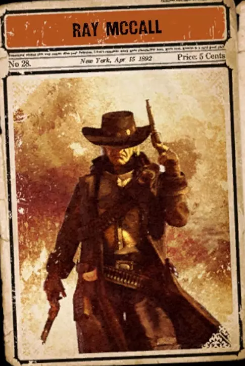 麦考尔兄弟中的老大,他和兄弟们是佐治亚州一位庄园主的儿子,其父亲曾为南部联盟参加美国内战。父亲在安提塔姆战役中牺牲后,他与兄弟们继续投身战斗。在亚特兰大战役期间,他因抗命被降职。战后,他以枪手身份成名,因其凶猛的作风和身着的那副古董征服者胸甲而闻名。他通过击杀众多对手树立了威名,其中最为人熟知的是他与臭名昭著的胡安·“华雷斯”·门多萨之间的恩怨。门多萨在墨西哥华雷斯城外拥有一座城堡,并率领一群匪徒组成军队,多年来在边境地区为非作歹。雷·麦考尔多年来一直以雇佣兵的身份漂泊于各个城镇,后来他找到了自己的使命,成为了一名牧师,抛弃了过去的暴力生活。然而,他的命运并非平静,晚年时他再次拿起手枪,去追捕涉嫌杀害他兄弟和妻子的侄子。1884年,他被多年前有过交集的“华雷斯”·门多萨所杀。他唯一的慰藉是知道门多萨肯定会随他一同坠入地狱之门。 令人惊讶的是,历史书籍对这位非凡的人物——枪手牧师雷·麦考尔——只字未提。