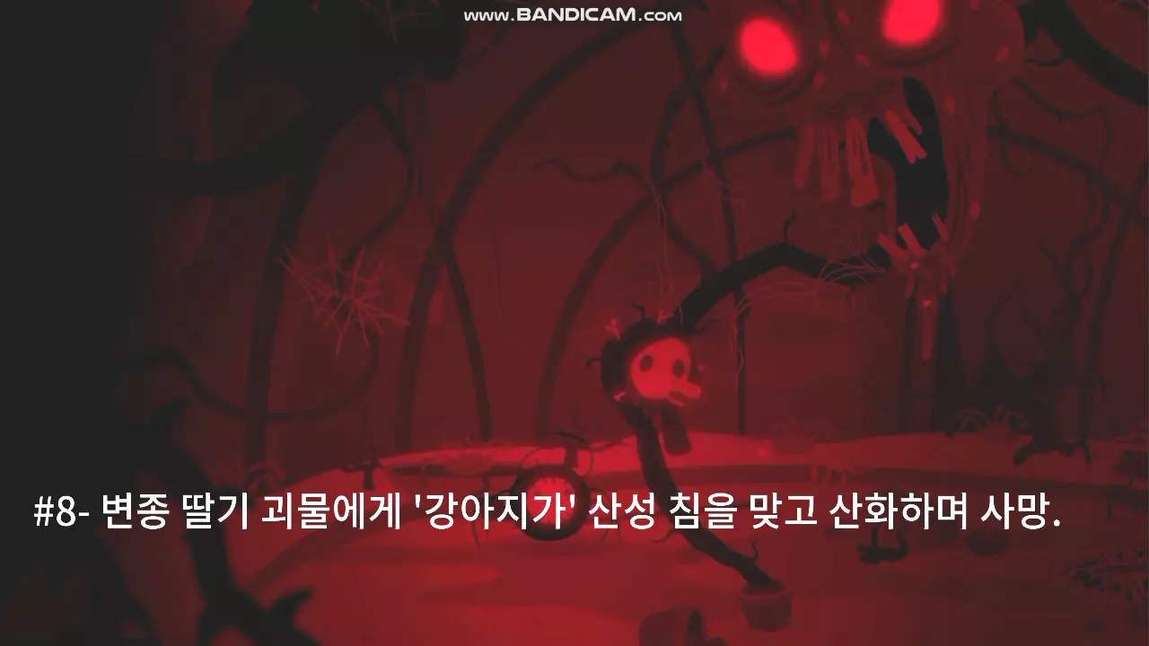 #8- 小狗被变异草莓怪物的酸性唾液击中,氧化后死亡。