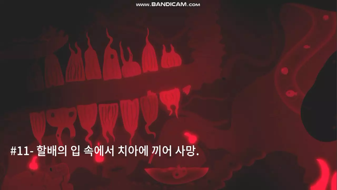 #11- 在老头的嘴里被牙齿卡住而死亡。