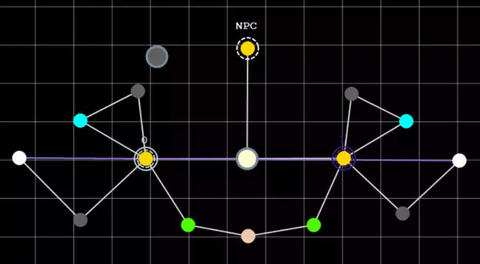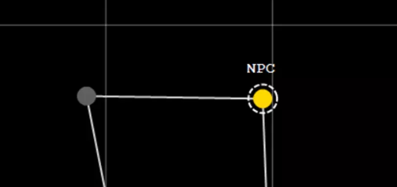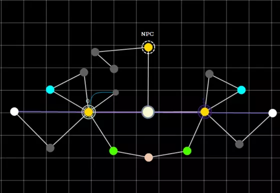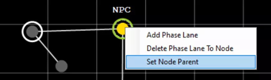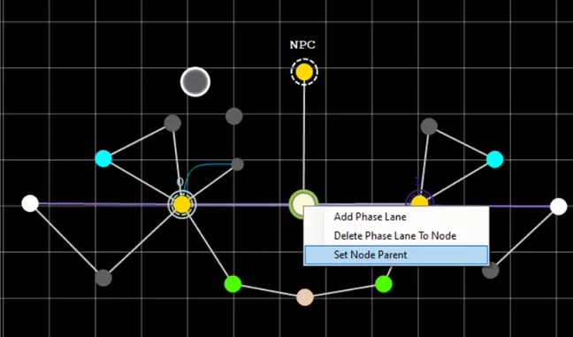 尽管我们的小行星现在有了母星,但它仍然是非法的。这是因为它缺少相位航道。每个星球必须至少拥有一条相位航道才能合法。 要添加相位航道,请(左)点击小行星将其选中。然后右键点击任意其他行星/恒星,并选择“添加相位航道”。在我们的示例中,我选择了上方带有“NPC”字样的黄色图标。