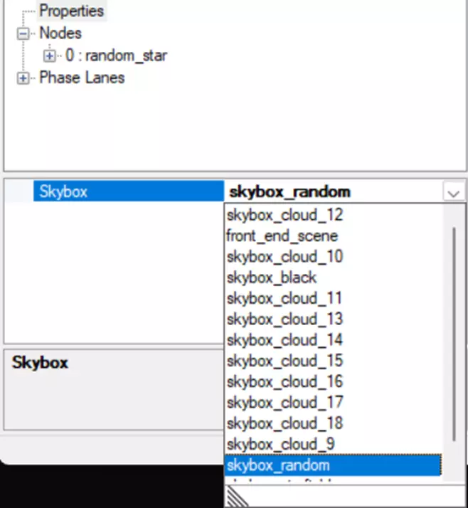 另一个需要解决的流程是设置天空盒。目前,《Solar Forge》不会自动设置天空盒。只需点击“属性”并选择任意你喜欢的天空盒即可。我们决定使用随机天空盒,这样地图每次都会有不同的氛围。