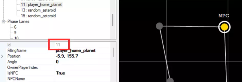 然后我们将此行修改为我们的次要势力世界ID,在我们的案例中是11,这也会在用户界面中创建行星之间的绿色连接。