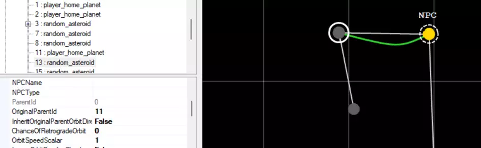 每个行星类型在星系地图上都有独特的图标颜色。刚开始可能会有点混乱,但只要创建一两个地图,你就会习惯这种表示方式。 ### 理解轨道 轨道分为4类: - 普通行星的轨道,以恒星为母星; - “卫星”的轨道,围绕其他行星运行; - 完全没有轨道,使行星保持静止状态。 **注意**:在本节中提到的“卫星”,并非指卫星类型的行星,而是指行星围绕其他恒星天体运行时的一种特性。因此,一颗围绕气态巨行星运行的海洋行星,在本节中仍会被称为“卫星”。 ### 普通轨道 默认情况下,每个行星都有轨道,并且所有行星都以相同的方向和速度旋转。但需要注意的是,即使行星的轨道速度相同,每颗行星完成一次轨道运行所需的时间也各不相同。这是因为轨道周长会随着与恒星的距离而变化。《太阳帝国的原罪2》会尝试对处于恒星相同半径距离内的行星进行位置调整,以避免行星碰撞。 因此,由于每颗行星的轨道半径不同,它们各自完成一次完整轨道运行的总距离也会不同。这也确保了行星相位航道连接会不断变化。 **同步轨道** 如果希望两颗行星保持相对位置不变,即使它们的轨道半径不同,你需要为其中一颗行星分配正确的parentID,然后设置SyncOrbitTimeToOriginalParent。第一步有点棘手,因为你需要获取“母行星”的正确ID。假设我们希望小行星与小型天体同步。