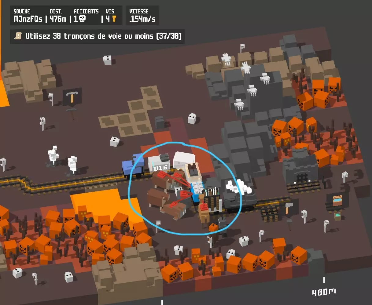 错失的机会 成功忽略50个车站。 要忽略车站,需将铁轨铺设到地图边缘,车站随后会爆炸,游戏继续(这意味着不会获得车站提供的螺丝)。