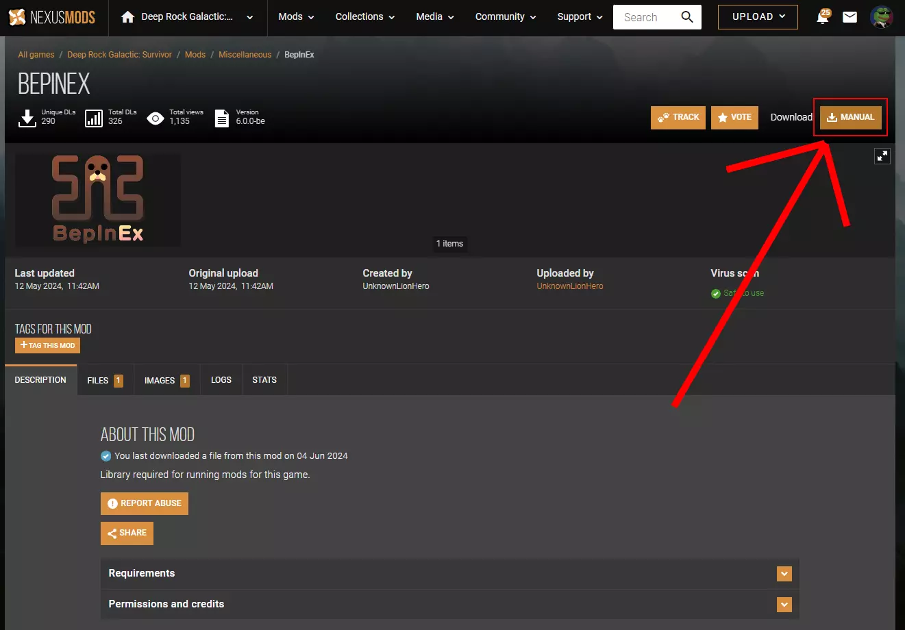 2. 在Nexusmods网站[www.nexusmods.com]下载用于安装模组的库文件“BepInEx”(这只是其他模组的框架)