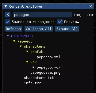 在《拆迁》模组编辑器中编辑模型时,你可以在“OTHER-MODS”中找到你的角色。其名称为你在info.txt文件中指定的名称(如果info.txt文件为空,则会显示为空白行)。 希望这能以某种方式帮助你创建并将自己的角色添加到游戏中,并且让你了解到模组制作的一些基本要点,尽管这只是一种非正式的方法 ¯\_(ツ)_/¯。现在,剩下的就取决于你的创造力、想象力,当然还有更广泛的相关知识了。 完整信息和文档可在此处查看:Animation documentation[teardowngame.com]。如果你在本指南中发现任何错误,欢迎在评论中告诉我!祝你模组制作顺利!