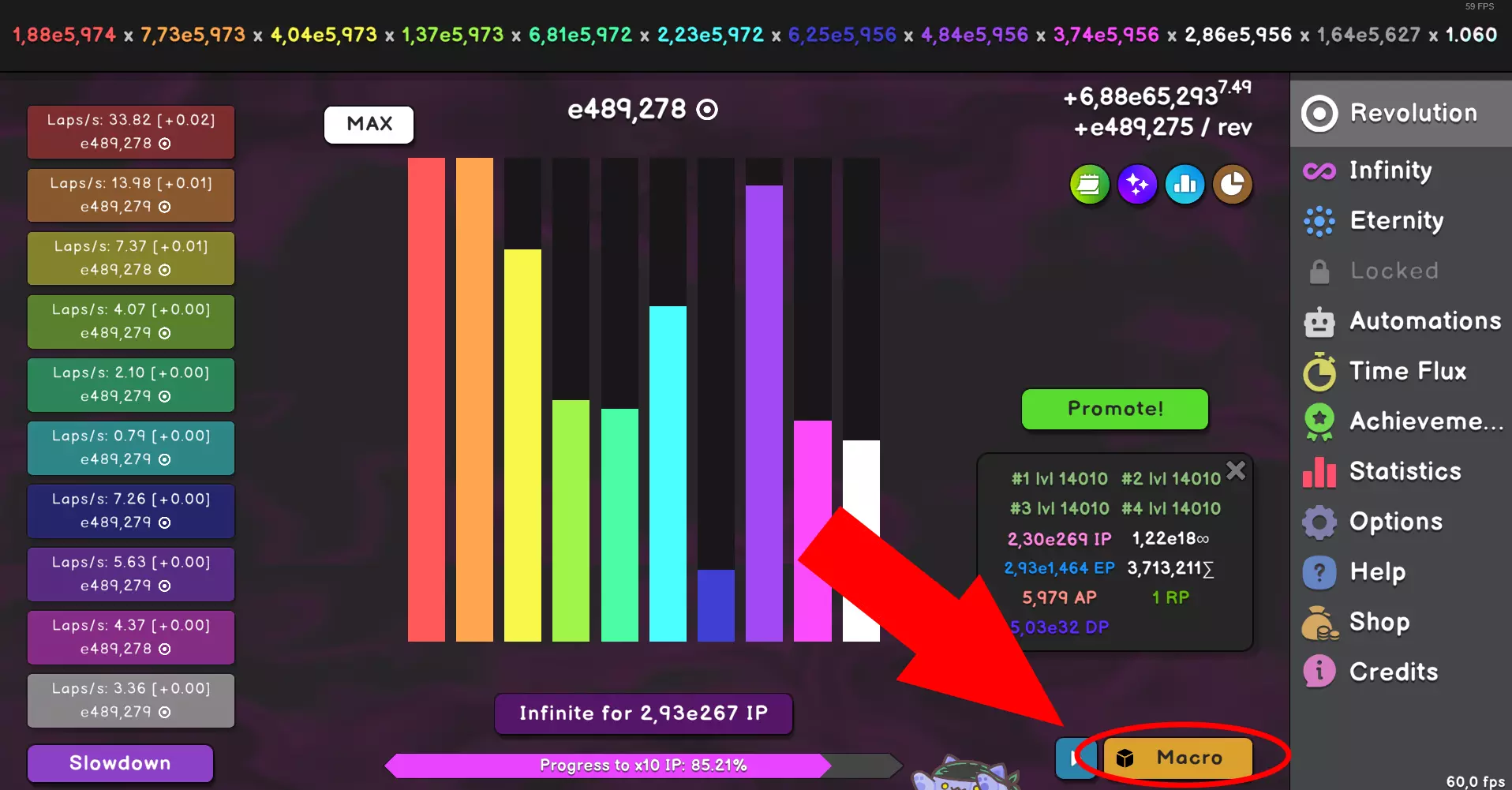 以下是我或其他人创建的一些简单但实用或有趣的宏。我个人并不擅长制作宏,但会尝试使用它们。如果你觉得其中任何一个有用,尽管使用。 ❗ 免责声明 我完全不擅长制作宏,这只是为那些懒得自己研究宏或根本不理解宏的人尝试制作的一些宏。我知道目前只有1个宏,但我会努力添加更多!如果你有自己的宏并想在这里分享,欢迎在评论中粘贴导出的宏并解释其功能。顺便说一下,指南图片仅使用宏界面的截图和图像处理制作而成。 欢迎提出修改和修复建议。### 如何安装 1. 要安装宏,需选中代码框内的所有文本并复制。 2. 打开《Revolution Idle》,在主标签页的右下角,你会看到一个“宏”按钮。 3. 点击该按钮后,在弹出窗口的右下角选择“导入”选项。 4. 之后,你可以按照截图中的宏设置进行配置,或者自行调整。 **注意:你可能需要购买一些模块才能使用它们。** 祝你好运! 以下是一些视觉指南:
