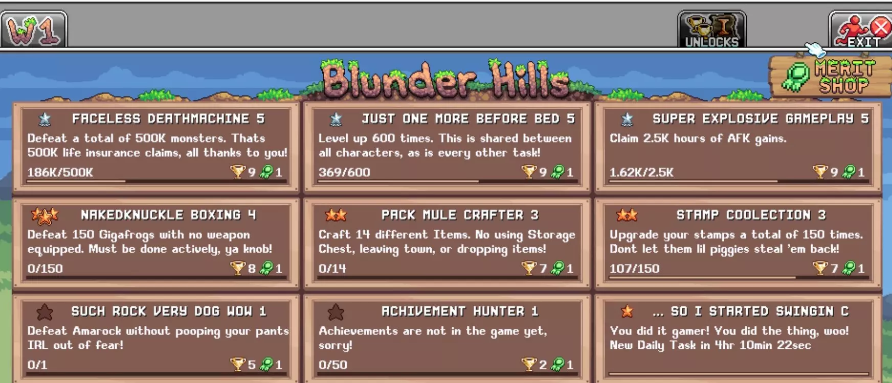 草原加里 - 玩家等级达到11级时可解锁该NPC。完成任务可在解锁界面解锁配方。右下角的任务为每日任务,建议在可游戏的每一天都完成该任务。功勋界面可购买W1(失误丘陵)的增益效果,能略微加快你的进度。