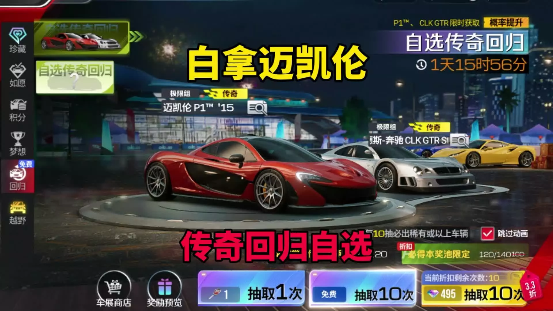 巅峰极速:传奇回归自选,白拿迈凯伦P1!