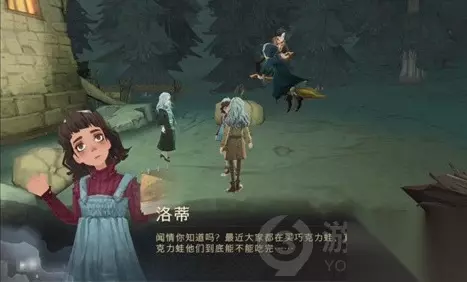 3.在庄园门口可以看到头上有黄色发光图标的人物,就是洛蒂,点击与洛蒂对话;