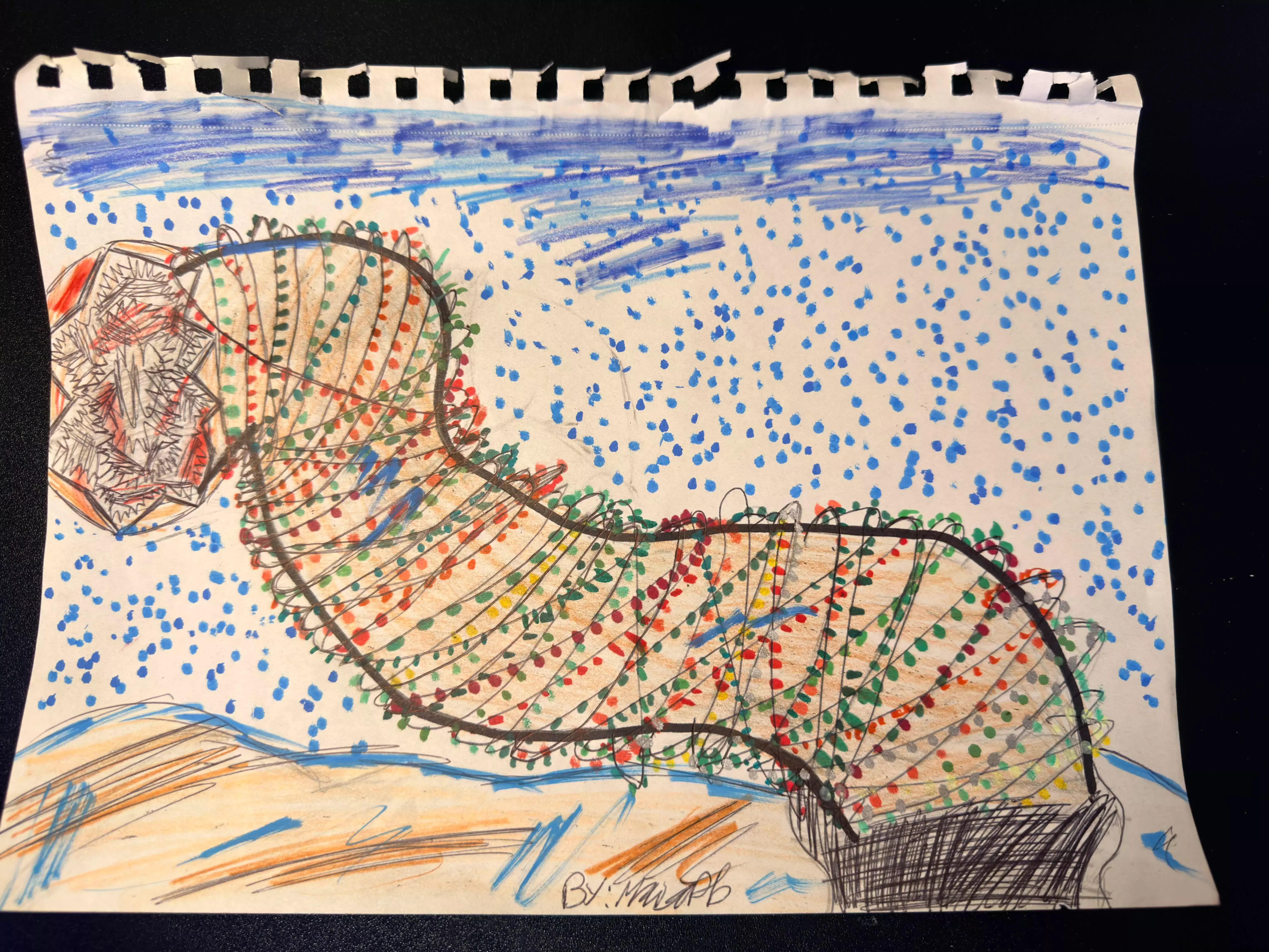 一张由variable_ian的女儿精心绘制的节日沙虫图片。 截图
