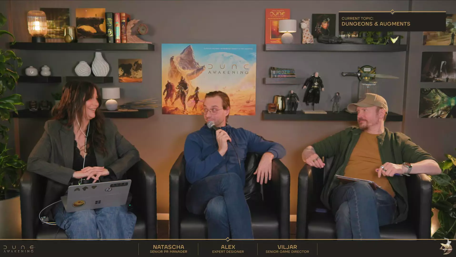这是我们开发者直播中通常不会展示的一个视角。有许多Funcom的工作人员在直播幕后辛勤工作,以确保直播顺利进行。这其中就包括进行彩排,就像图中所示的这样。