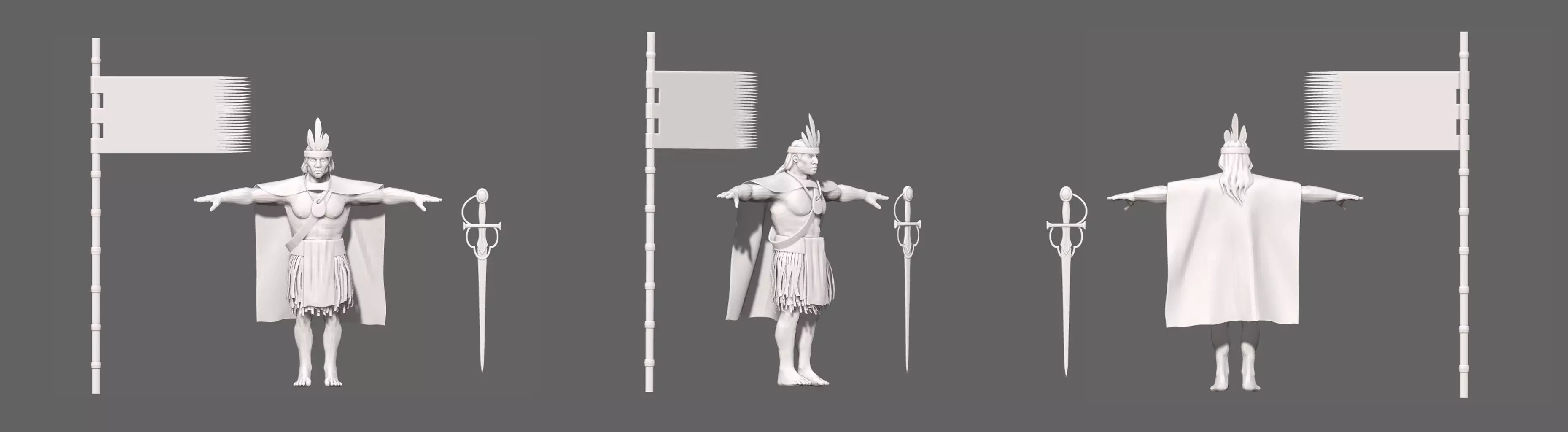 普通黑木弓箭手 对于全新的南美主题单位,我从概念艺术图入手,从头开始构建3D模型。我着重捕捉类人单位华丽的珠宝装饰和独特造型,并着手对西班牙战犬的独特特征进行数字雕刻这一颇具挑战性的任务。最困难的部分在于,要在历史真实性与游戏美术风格所需的 stylized 比例之间找到完美平衡。尽管面临挑战,但将这些文化细节转化为三维模型,并最终看到角色栩栩如生,这一过程令人感到无比满足。