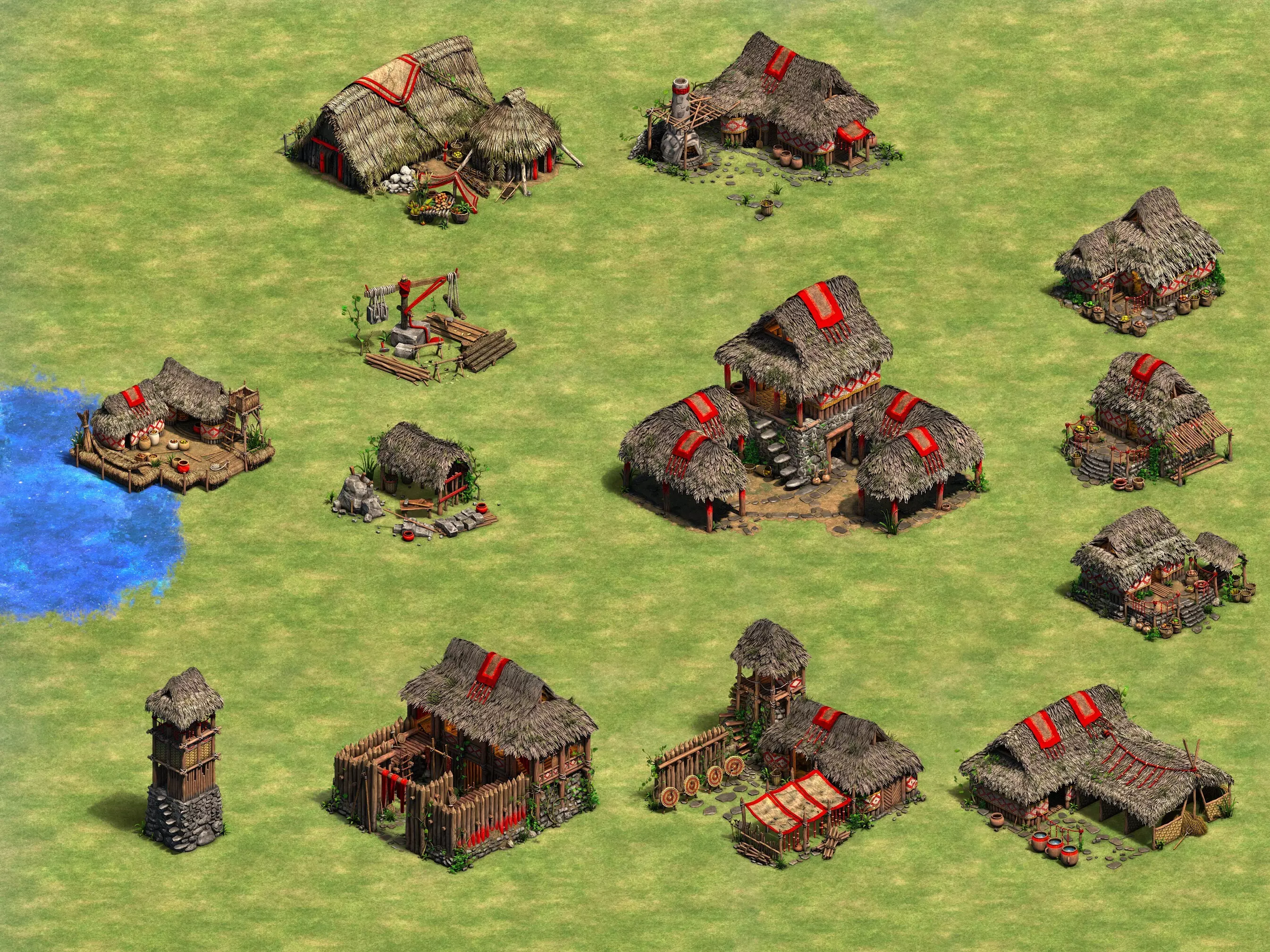 封建时代建筑套装 美术总监 恩里克 我们花费了大量时间来优化每个时代套装的外观。我们的目标是尽可能保持历史真实性,同时使设计贴合《帝国时代2》的风格——色彩鲜明且充满活力,同时又不失可信度,确保所有建筑与其他建筑套装风格统一。 这也能帮助玩家快速识别建筑的时代演进,并理解单位的功能和等级。由于在标准缩放级别下建筑尺寸较小,这种辨识度尤为重要。