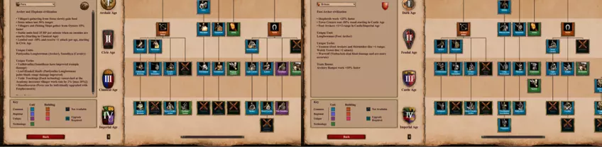 与《帝国时代2:决定版》不同,编年史文明拥有总共四项独特科技。不过,和《帝国时代2:决定版》一样,在第三和第四时代只能选择一项科技;虽然在最后两个时代你仍会获得熟悉的单一独特科技,但你可以在科技树的探索过程中自定义你的文明! 全新的水域玩法——潜入水中吧,水温正合适!