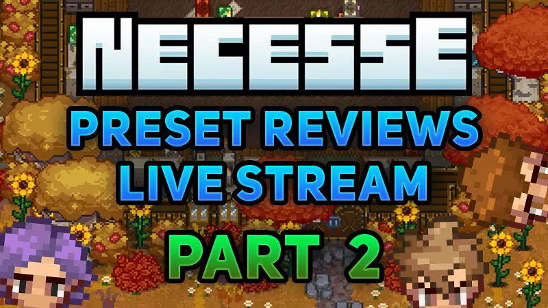 大家好! 《Necesse》开发团队的第二次预设评审直播即将开始! 本周三,即9月10日欧洲中部时间晚上8点,我们将延续上次直播的形式,评审大家制作的所有精彩预设! 随着1.0版本发布日益临近,而待评审的预设数量依然很多,本次我们在初始预设筛选环节会更为严格。不过请放心,直播计划仍将评审至少约100个预设,内容绝对充足。 直播末尾我们还将分享一些新消息,敬请留意! 你可以在YouTube或Twitch观看直播: YouTube Twitch 如果你在想:“糟糕,那个时间我看不了直播,我的生活该怎么办啊!?”“ - 我们会处理好的,直播内容稍后会上传至Necesse的YouTube频道。 直播结束后一两天内,我们还会在Discord上分享所有预设提交被采纳者的名单。 如果想查看社区目前提交的所有预设,欢迎前往Necesse的Discord服务器,查看#preset-submissions频道。 周三见! - Fair”