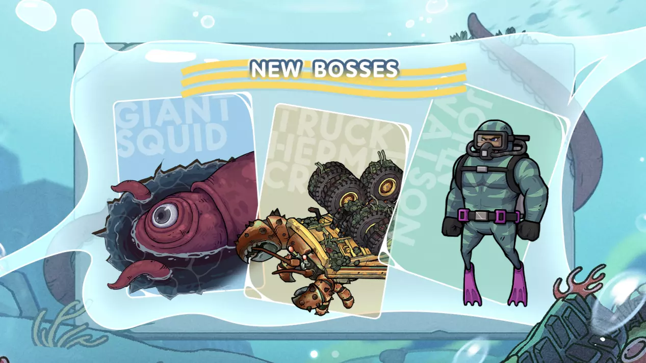 与此同时,来自《潜水员戴夫》的三位传奇 Boss 将加入《魔法工艺》:巨型鱿鱼、卡车寄居蟹和约翰·沃森!每一位 Boss 都在保留《潜水员戴夫》创意精髓的同时,融入了《魔法工艺》标志性的 Roguelike 弹幕射击风格。魔法师们,准备好迎接这些不容错过的战斗吧!
