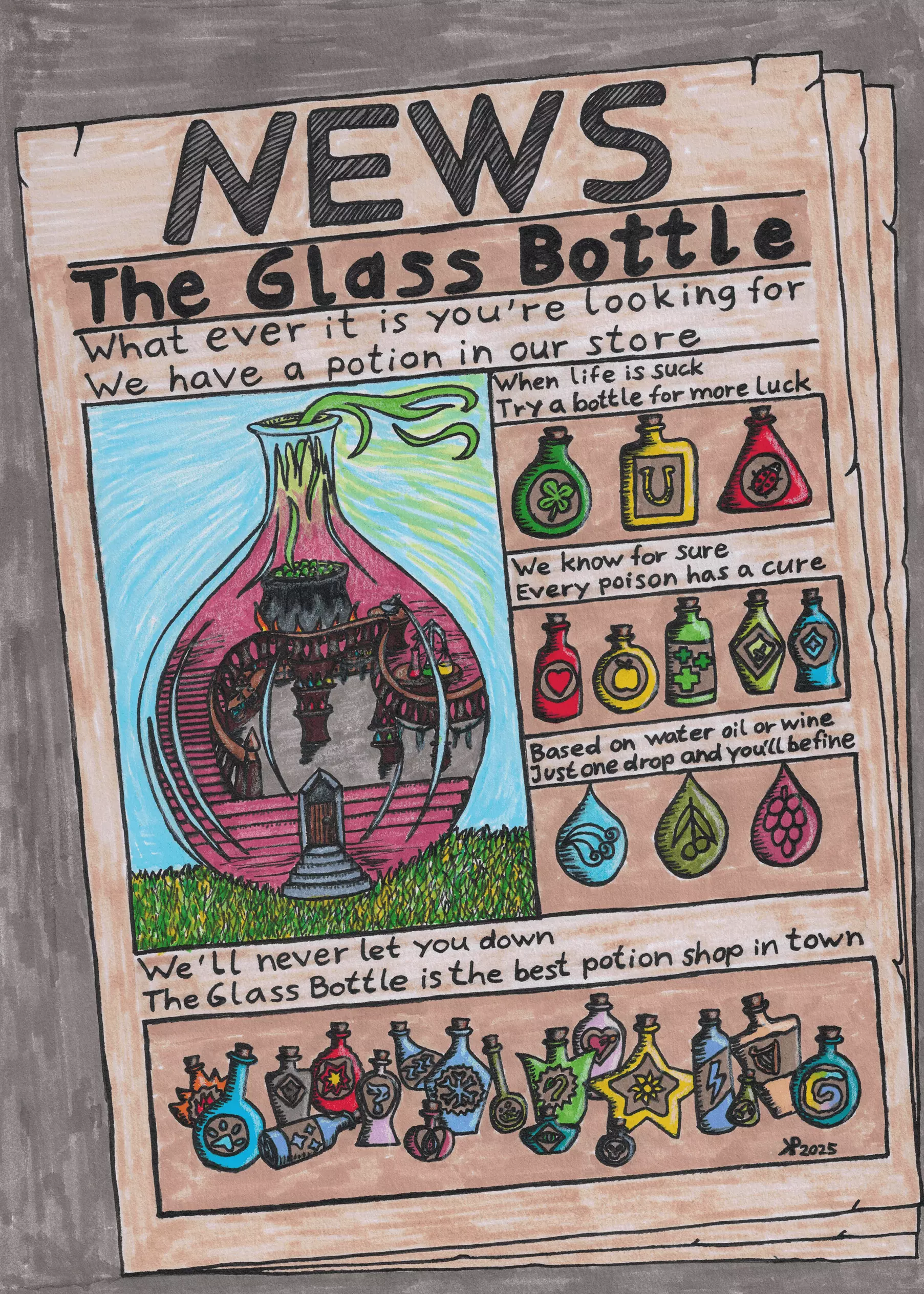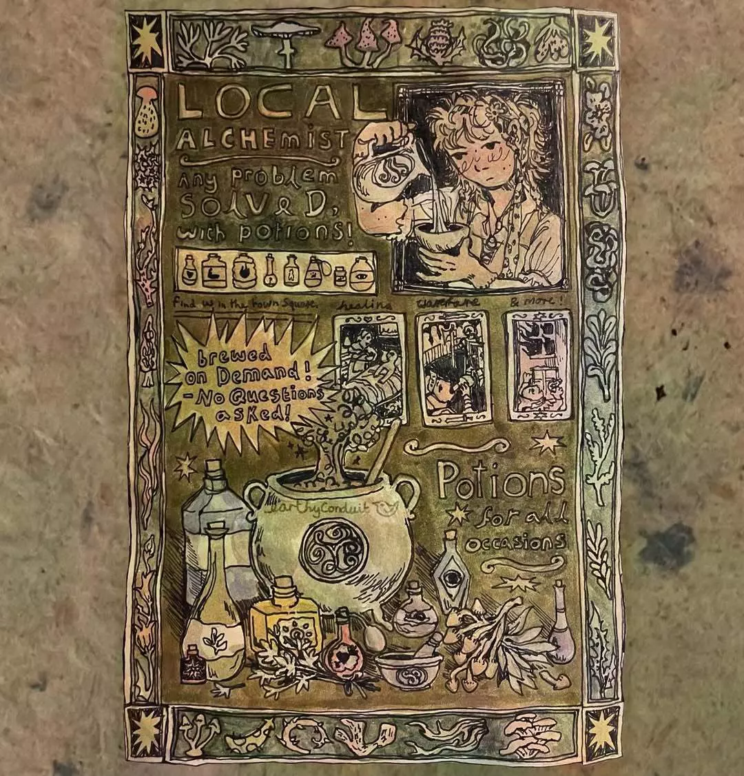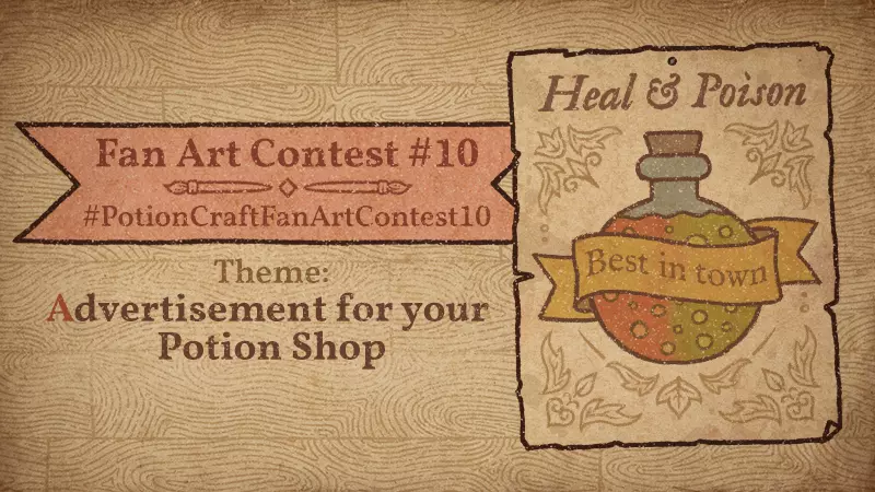 各位炼金术士们,大家好! 又到了《药剂工艺:炼金术士模拟器》粉丝艺术创作大赛的时间啦! **主题:为你的药剂商店创作广告** 本次大赛要求大家为自己的药剂商店创作一则广告。任何形式的广告(报纸插页、传单、横幅、视频等)均可,但必须符合《药剂工艺:炼金术士模拟器》的游戏设定。 **参赛指南:** 1. 在社交平台上使用标签#PotionCraftFanArtContest10发布你的作品,或加入《药剂工艺:炼金术士模拟器》Discord并在#fanart频道发布。 2. 作品提交截止时间为2025年3月14日18:00(GMT)。获奖者名单将在两周后公布。 3. 大赛将评选出9名获奖者,每位获奖者将获得一枚可从tinyBuild游戏库中自选游戏的Steam激活码! 4. 欢迎提交多份参赛作品。 祝大家好运!《药剂工艺:炼金术士模拟器》第一届粉丝艺术大赛获奖者公布: 感谢所有参与#PotionCraftFanArtContest10的玩家,我们非常感谢大家的踊跃投稿! 以下是本届大赛的9幅获奖作品,请大家期待下一届比赛的到来!