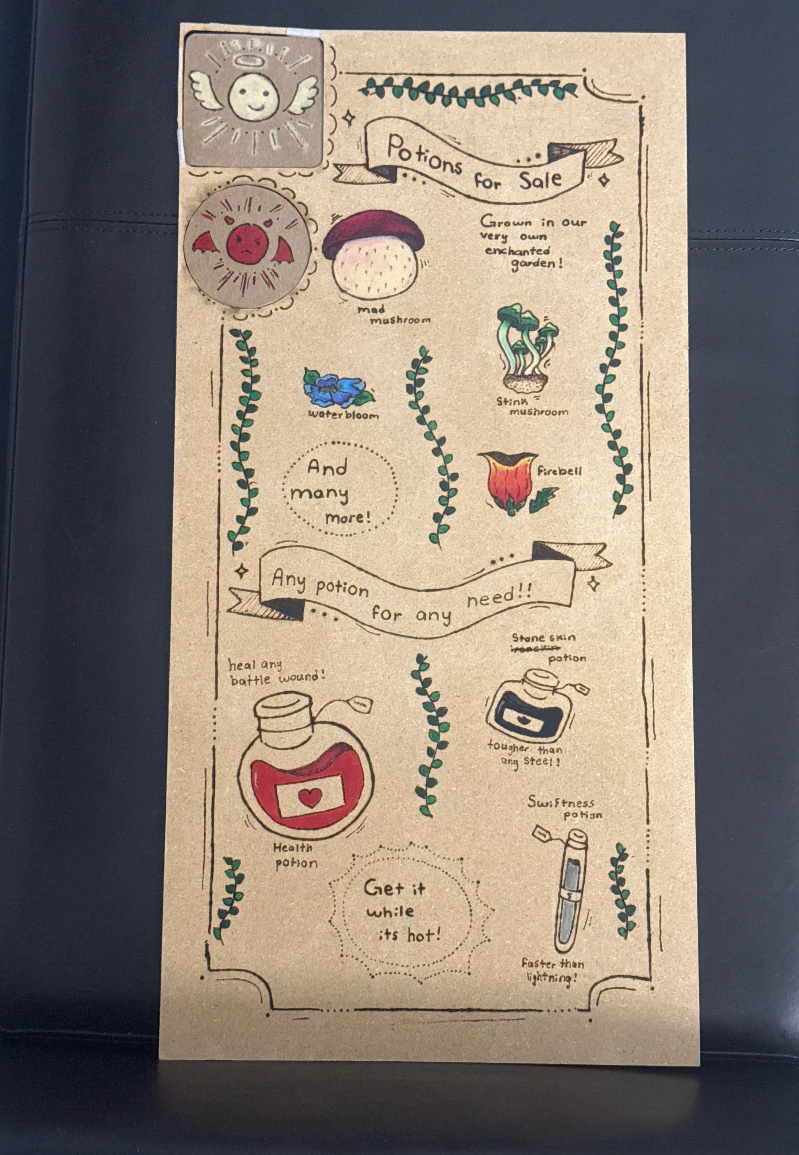 Discord 用户 _sab_m_ 发布的这张传单着重展示了他们制作的优质药水和高品质原料——当然,这些原料都是在他们自己的花园里种植的。