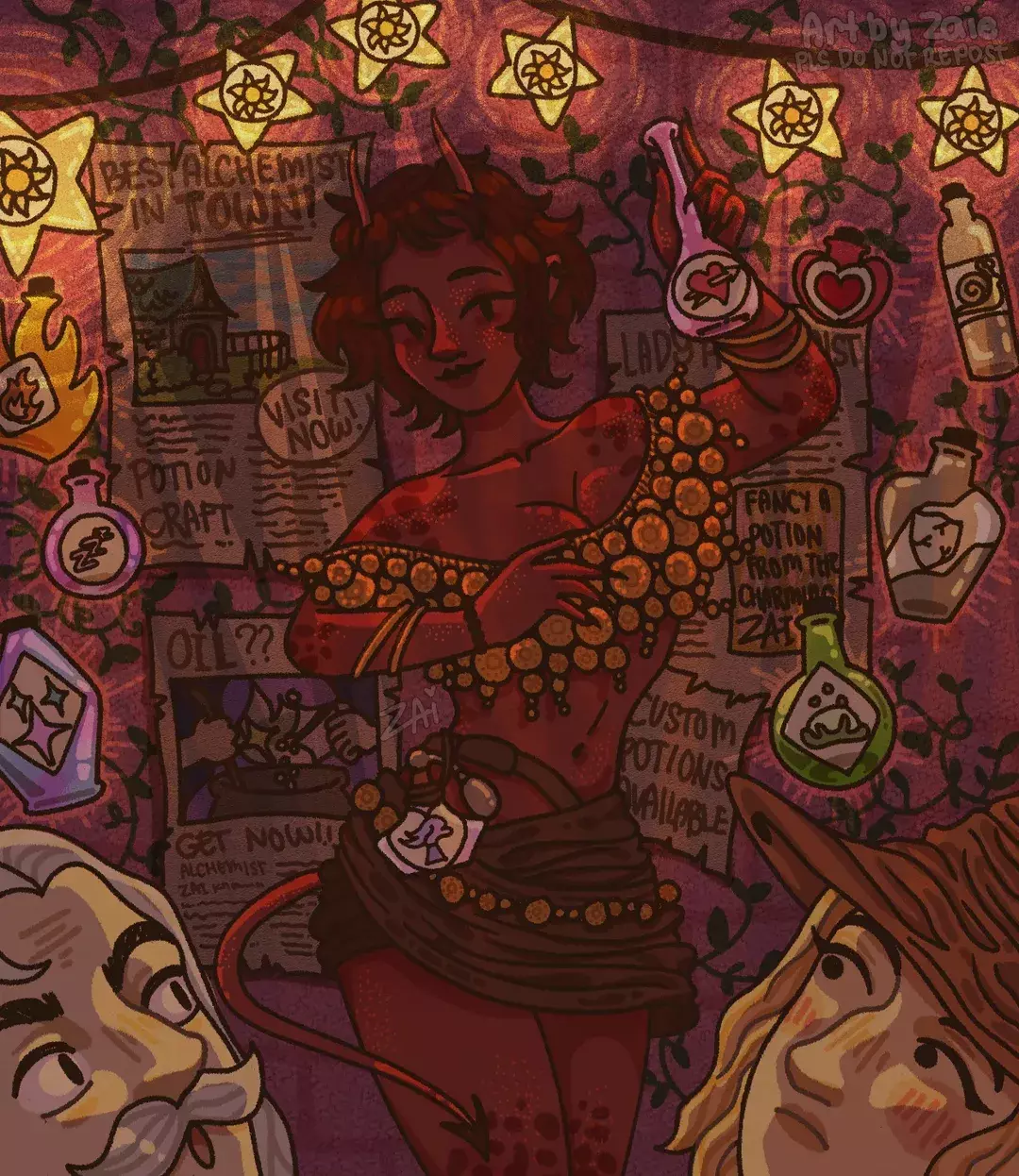 首先,Instagram 上的 zai.lesia 创作了这幅可爱的图片,内容是特沃克斯女士正在为她们的店铺做广告宣传!