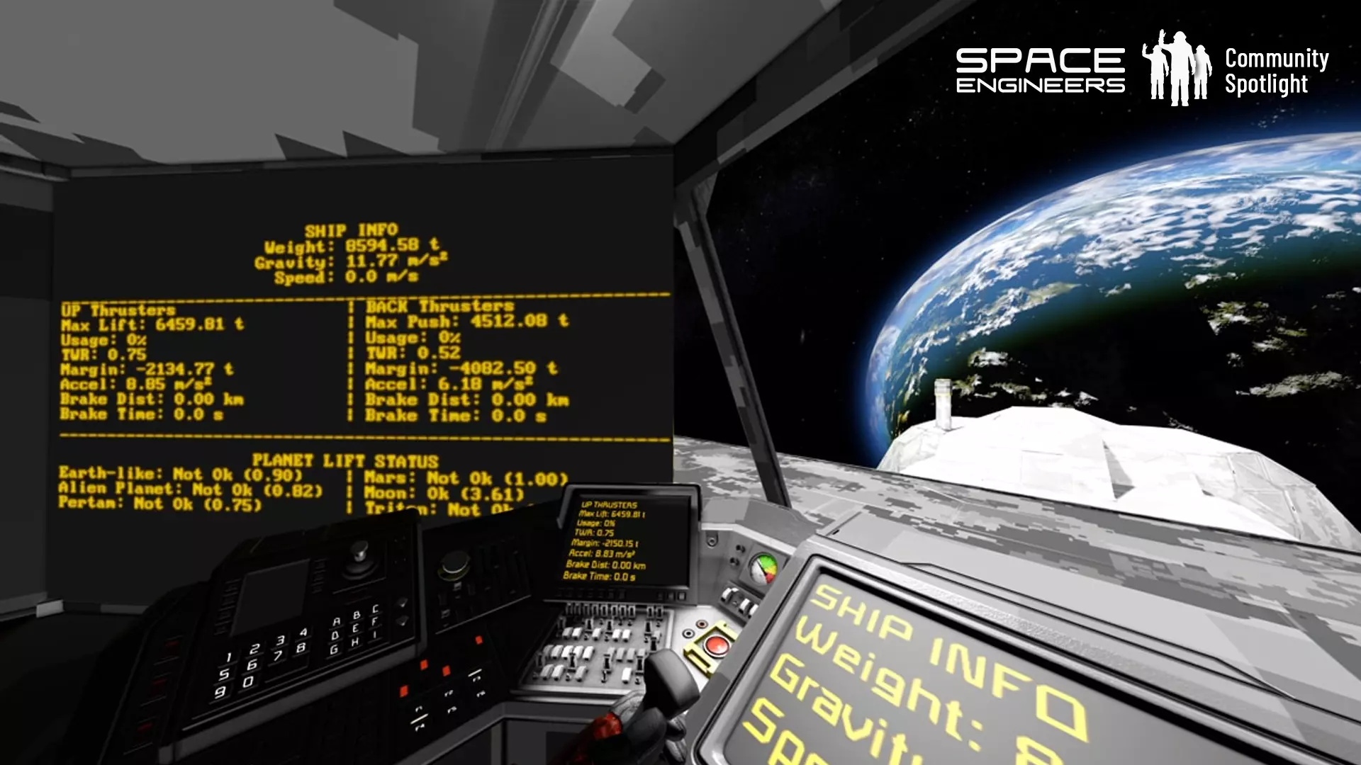 [td]TuroP_Sy 制作的《太空工程师》Redux 计算你的飞船在任意星球上的动力和升力! 《太空工程师》Redux(SER)是一个脚本,用于从两个方向显示飞船状态:向上(悬停能力)和向后(采矿或制动力)。[/td]
