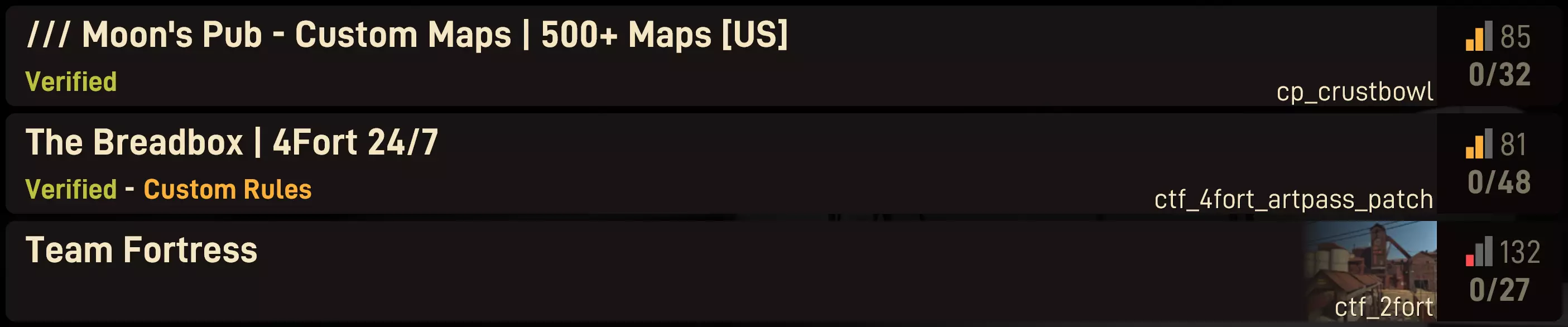 大家好!在正式发布前,我们想简要介绍一下《军团要塞2:机密》中服务器托管的基本运作方式。我们预计会有许多新玩家加入,并且游戏也进行了大量改动,因此即使你是经验丰富的服务器托管者,本文也值得一读。 **手动验证** 对于《军团要塞2:机密》的新玩家,我们运行手动服务器验证程序。简单来说,只要你的服务器稳定且维护良好,你就可以通过我们的已验证服务器页面申请验证。验证通过后,你的服务器将在浏览器中标记“已验证”标签,这能让新玩家了解到你的服务器能提供良好体验,同时我们也会向受信任的托管者开放丰富的功能。如果您未通过验证或不想申请,不必担心——您的服务器仍会正常显示在浏览器中,所有人都可以查看和游玩。除非在极少数极端情况下(例如托管恶意软件或非法内容),否则我们不会将服务器列入黑名单。我们无意对服务器进行严格监管,但请记住,友好运营总是有益的。 ### 服务器浏览器 正如我们几个月前简要提及的,服务器浏览器已进行全面翻新!虽然我们计划在未来进一步对其进行彻底改进,但就目前而言,您应该能更轻松地找到符合自己偏好的服务器进行游玩。