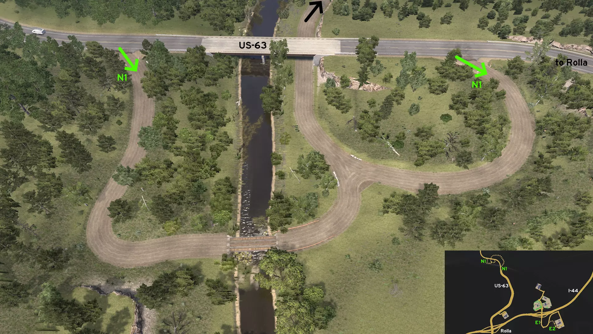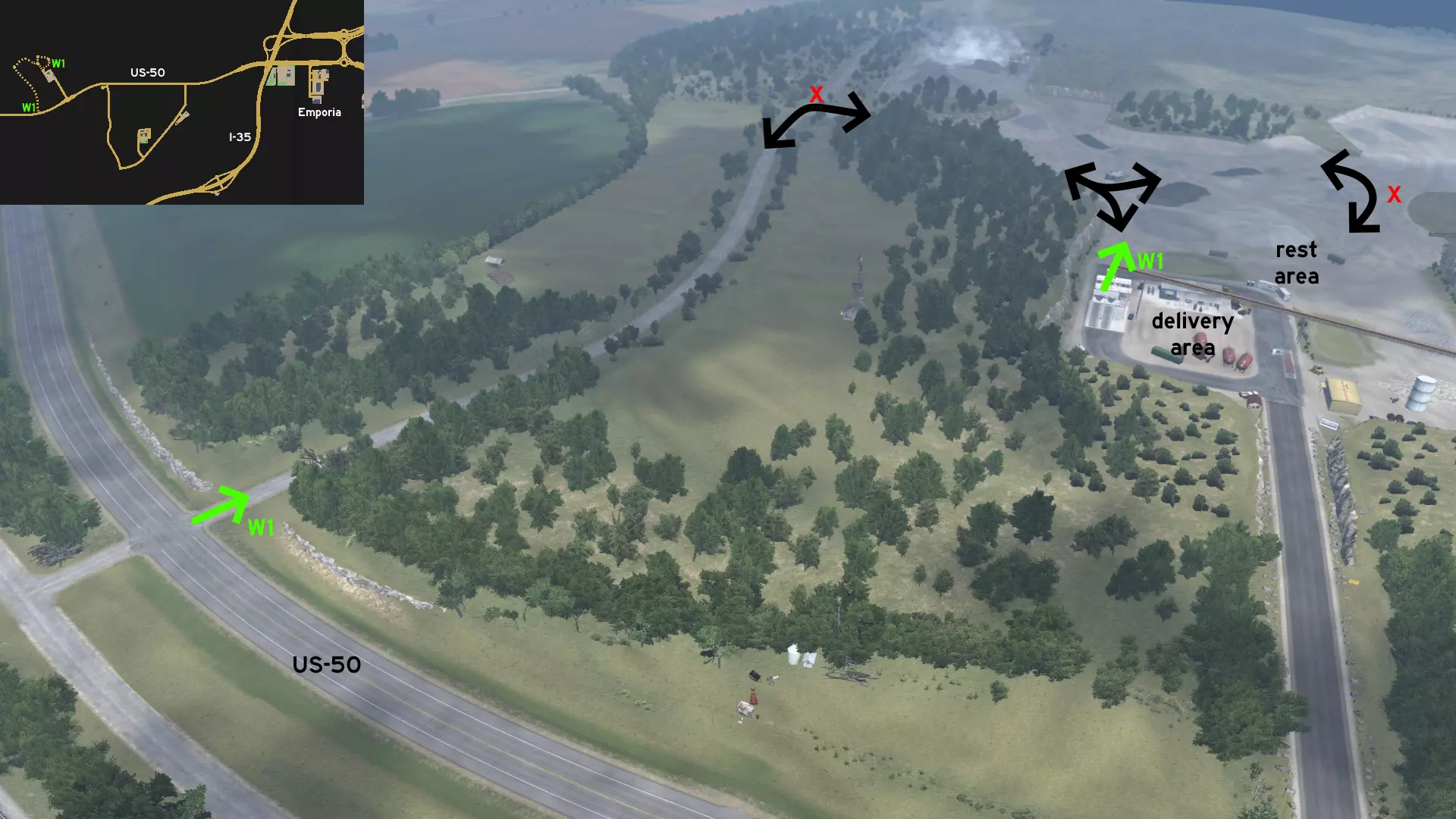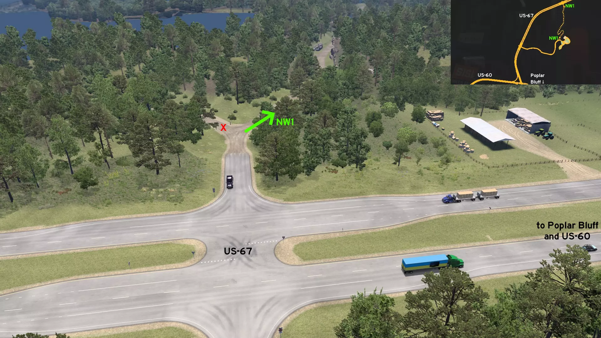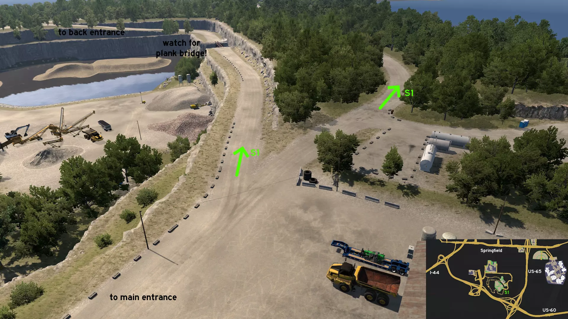 从罗拉东部出发,沿44号州际公路行驶。从出口前往X-Tech Machinery。不要一直沿着标记路线行驶到终点,在中途转入崎岖小路。小心驾驶,避免撞上散落在道路上的树枝,以免重蹈另一位卡车司机的覆辙。