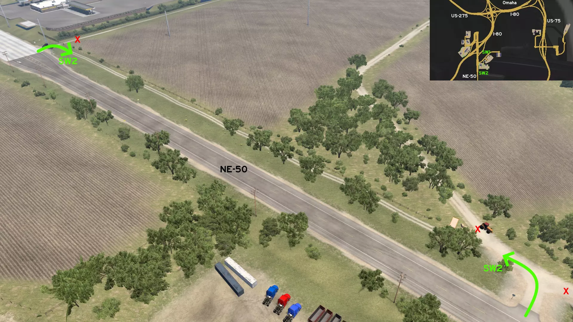 这是《美国卡车模拟》隐藏道路的指南,这些道路未在地图上标记,但无需模组或控制台命令即可进入。一旦我们或您发现新的道路,我们将立即更新本指南。▪ 已发布:爱荷华州、堪萨斯州、密苏里州、内布拉斯加州 ▪ 即将推出:伊利诺伊州、南达科他州 ▪ 已保留:印第安纳州、密歇根州、明尼苏达州、北达科他州、俄亥俄州、威斯康星州 ▪ 新增内容 ▪ 中西部 - 爱荷华州 - 锡达拉皮兹(卡车清洗站)、康瑟尔布拉夫斯(E2)、达文波特(E1+SW1+卡车清洗站)、道奇堡(SW1)、奥塔姆瓦(W1)、苏城(卡车清洗站) 南部 - 阿肯色州 - 特克萨卡纳(E1) 南部 - 路易斯安那州 - 巴吞鲁日(C1+N1+NW1+S1+W1)、德里德(E1)、拉斐特(NE1+SE1+SW1+W1)、纳奇托什(E1+E2)、新奥尔良(W1)、福煦港(C1)、什里夫波特(SW1) 南部 - 俄克拉荷马州 - 伊尼德(S1) 南部 - 得克萨斯州 - 阿马里洛(卡车清洗站)、泰勒(N2) 西部 - 犹他州 - 盐湖城(SW1) ▪ 更新内容 ▪ 南部 - 阿肯色州 - 埃尔多拉多(SE1) ▪ 移除内容 ▪ 南部 - 阿肯色州 - 特克萨卡纳(N1) 西部 - 加利福尼亚州 - 圣玛丽亚(E1)