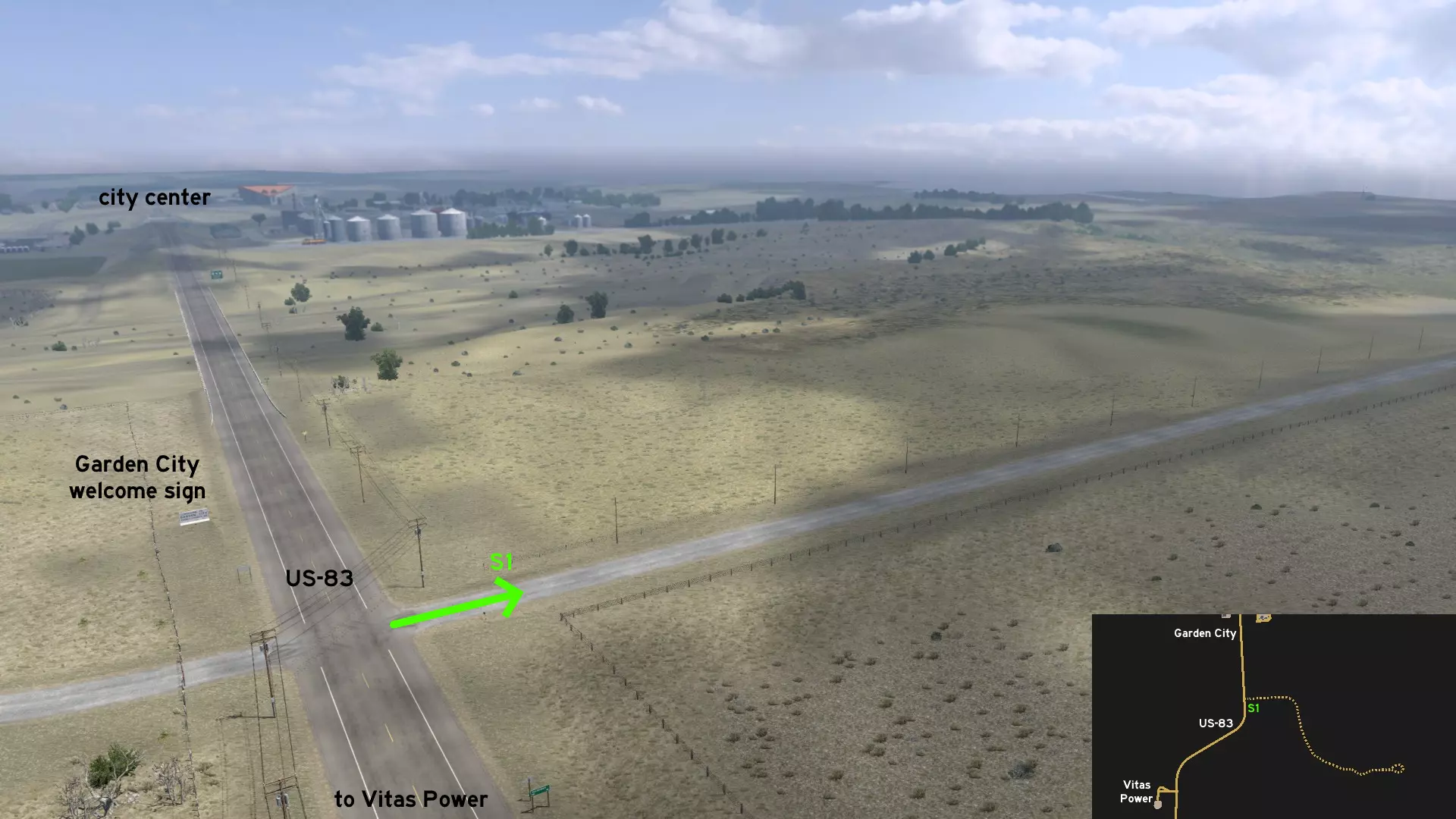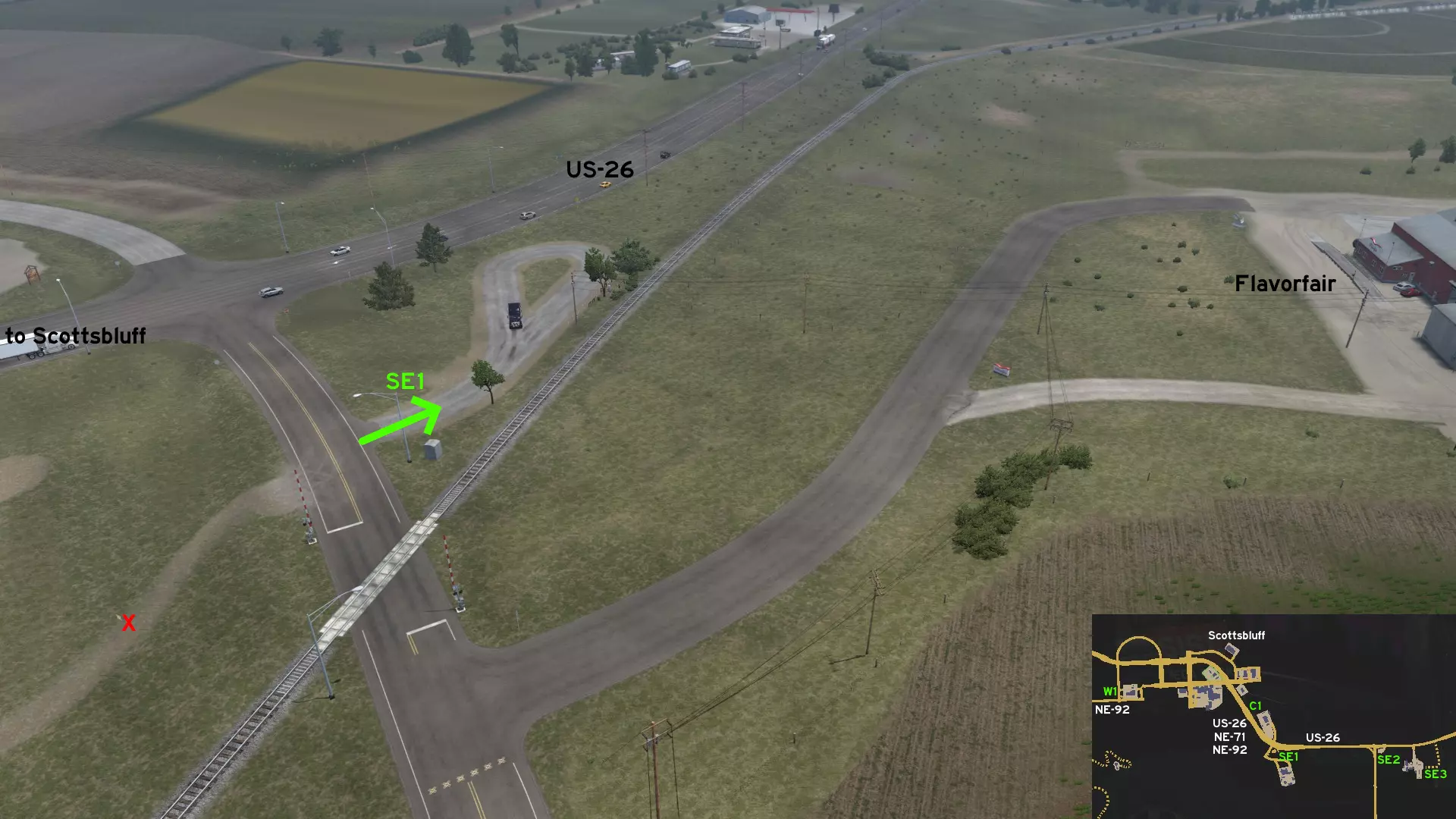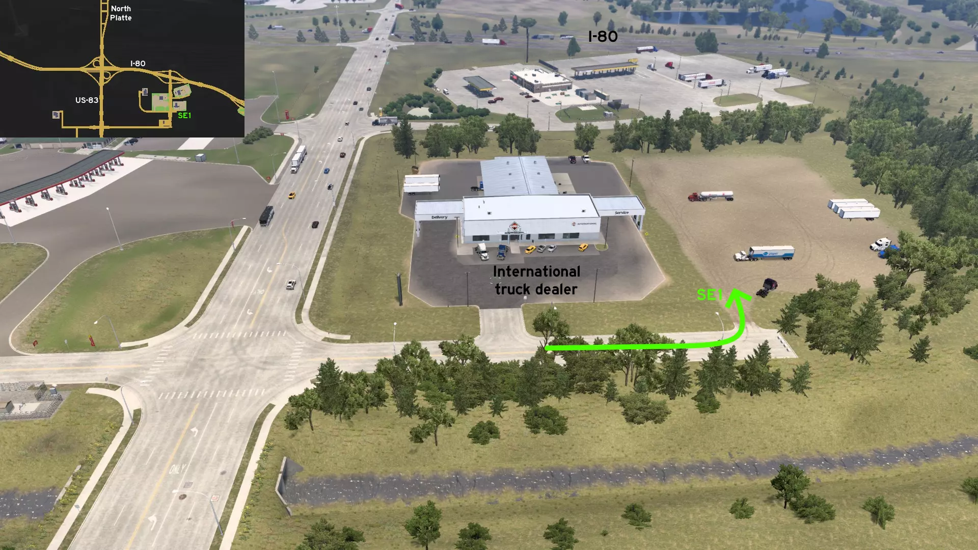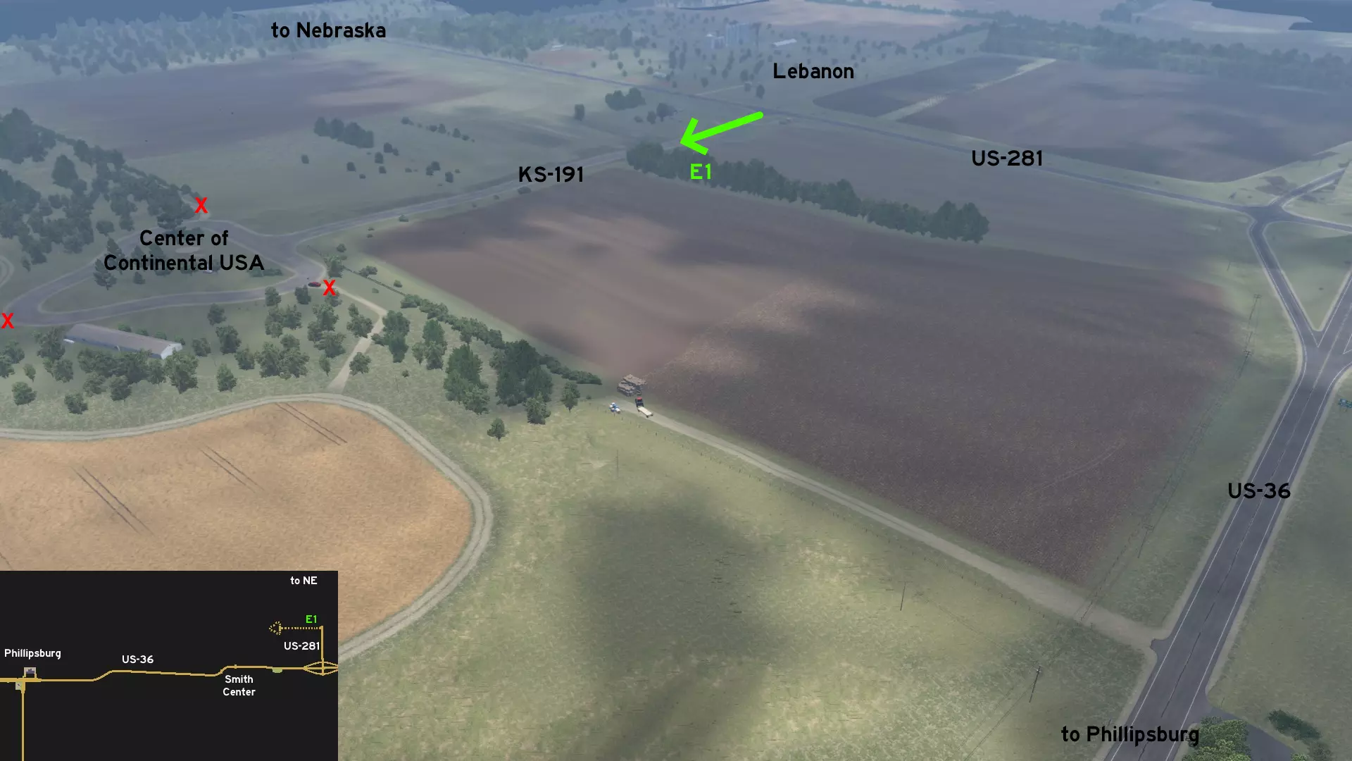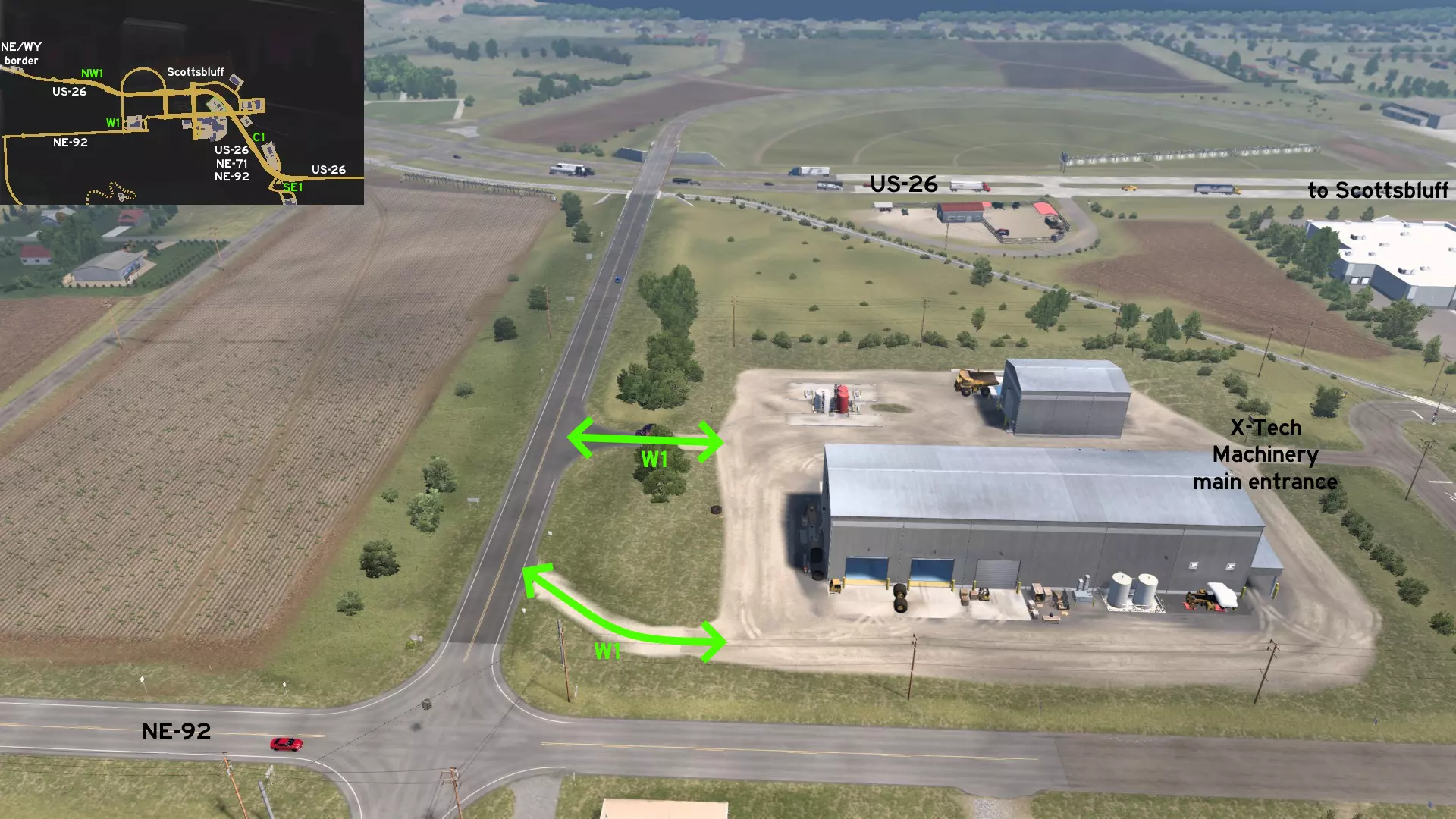 在北普拉特东北部,更准确地说是在未标记的塞福德镇东南部,NE-2公路与US-83公路的交汇处,以及斯科特瞭望塔的导演剪辑版(Director's Cut)和一个小型卡车停靠站附近,有一条沿着NE-2公路延伸的长长的 gravel path(碎石路)。