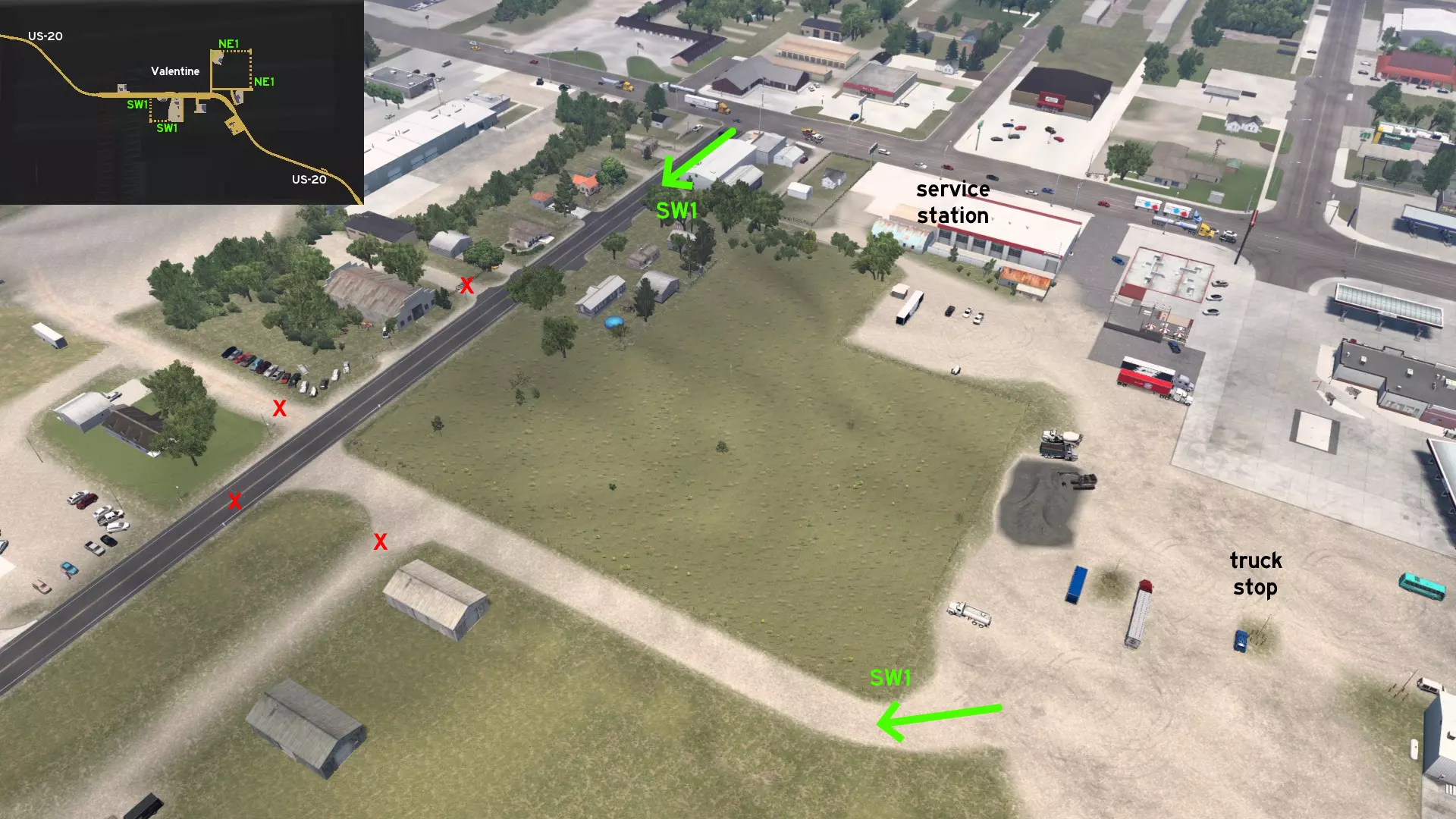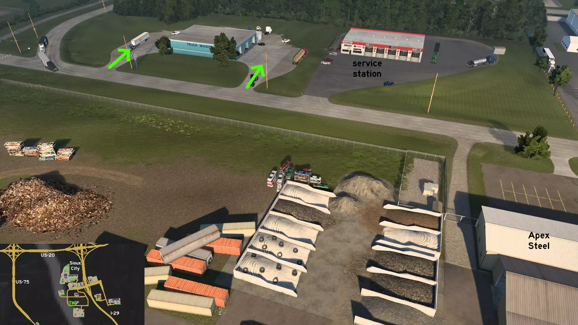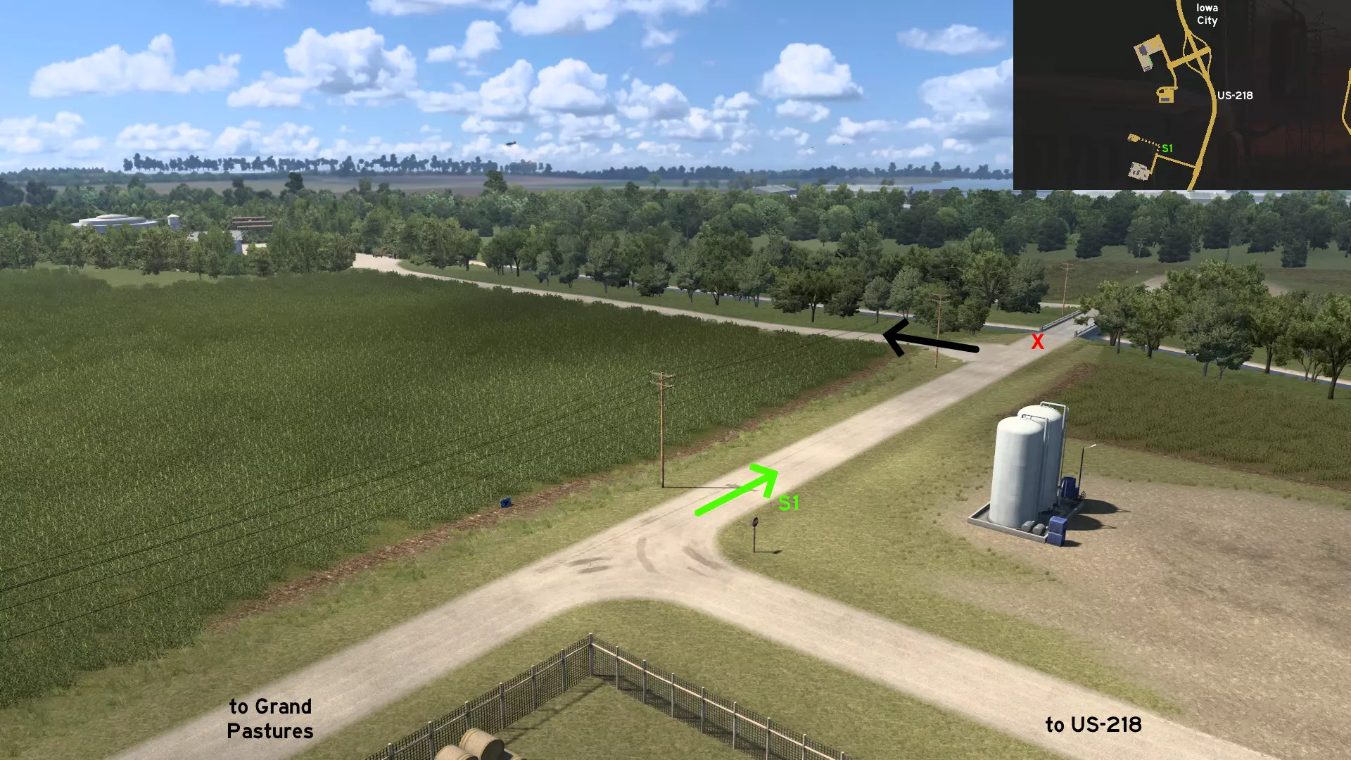 从道奇堡出发,沿20号美国国道向西行驶,然后转入71号美国国道向南。前往常青农场或维塔斯电力建筑工地。有一条尘土飞扬的小路连接着这两个地方,你可以利用它来避开路口的车流。 爱荷华城 南部1区 - 卡车司机未曾踏足之地 分类:彩蛋、可标记 发现者:olm823249、Oni