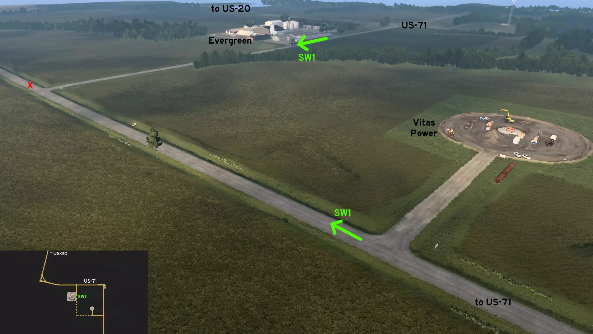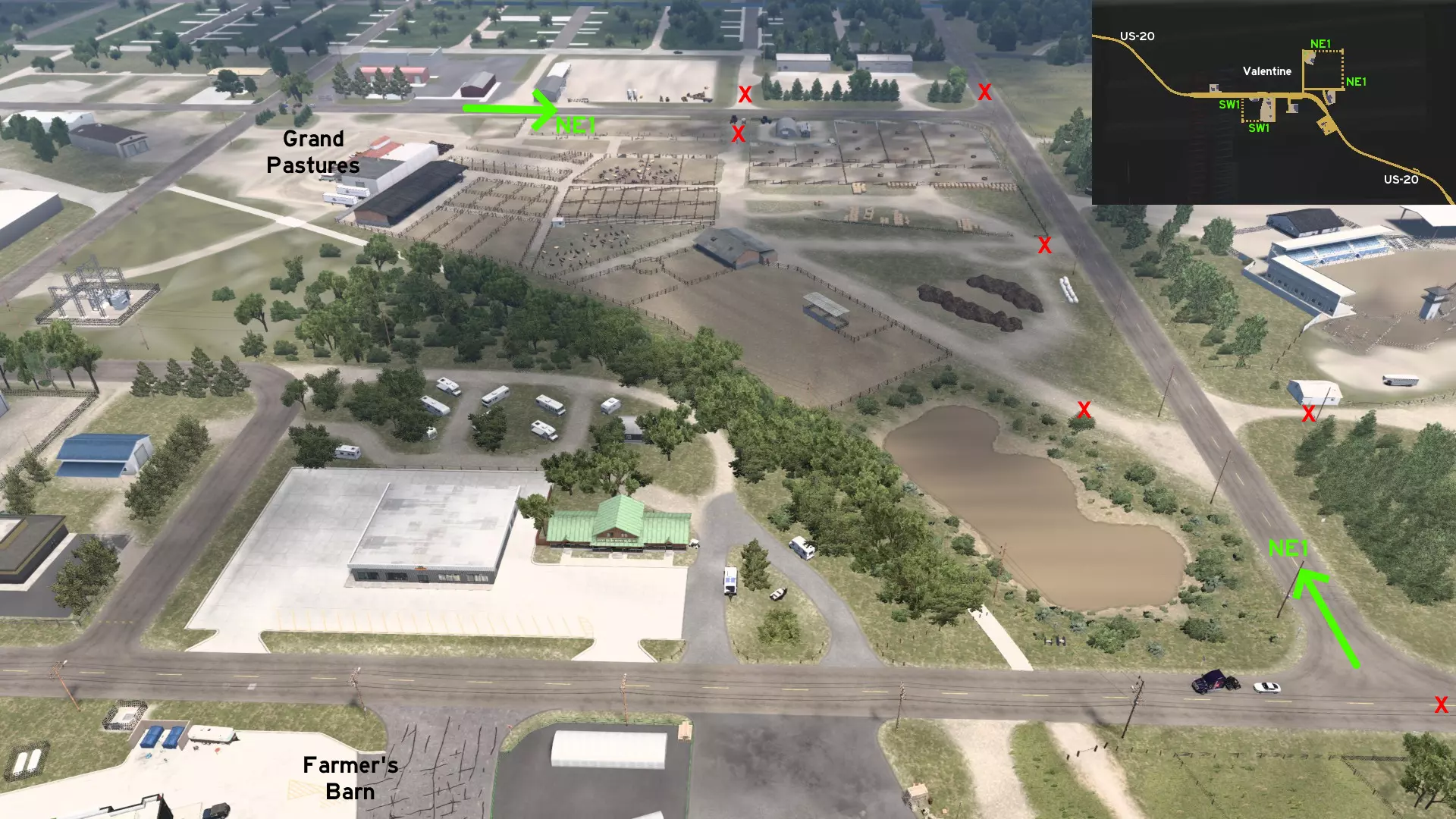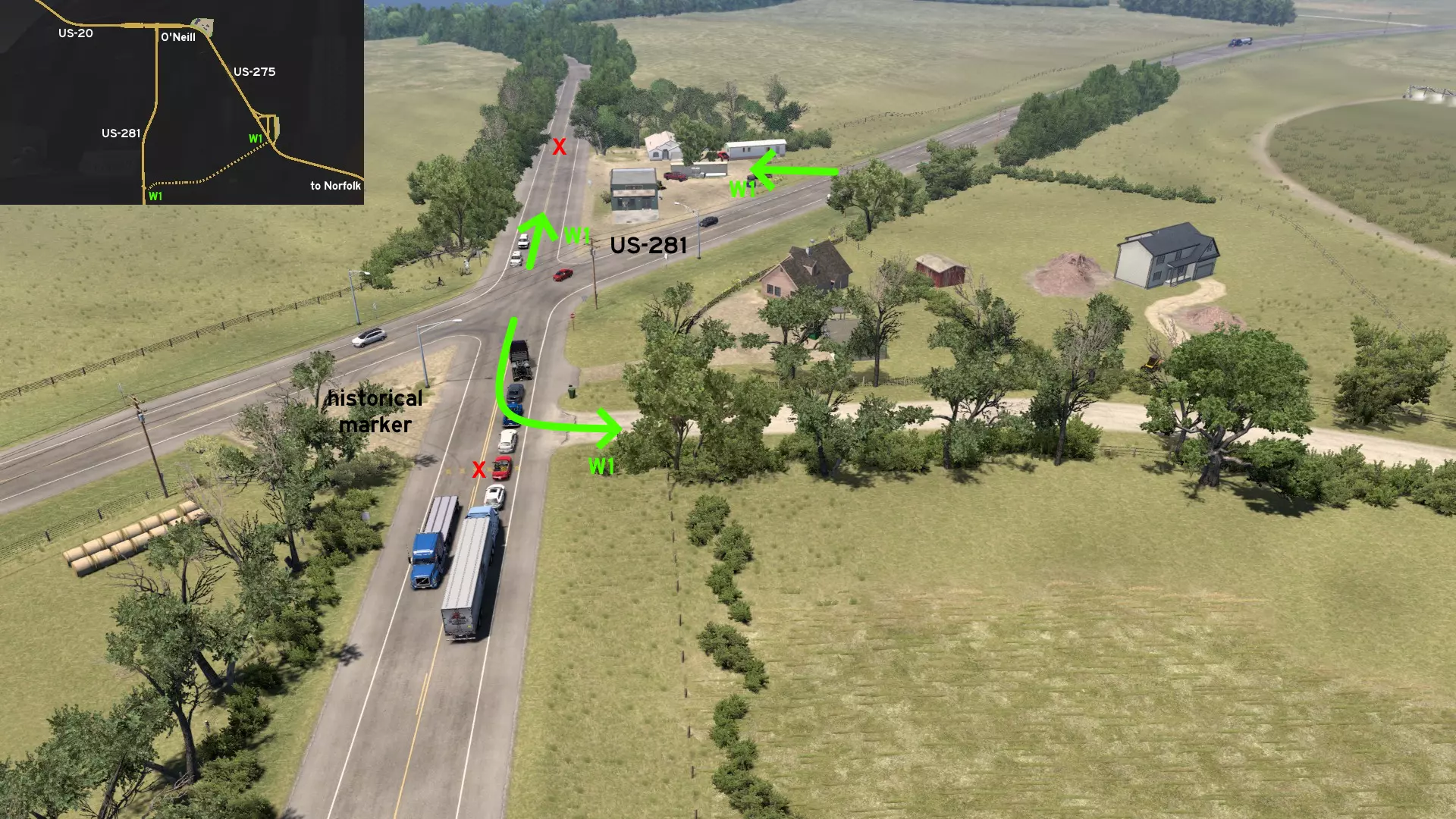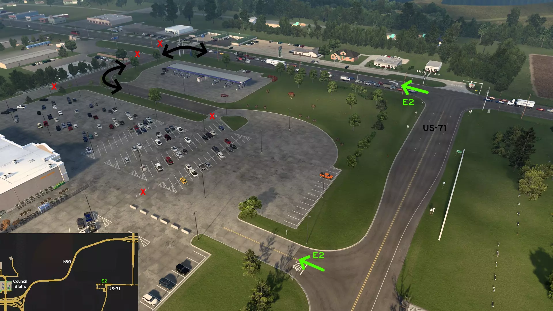 从道奇堡出发,沿20号美国国道向西行驶,然后转入71号美国国道向南。前往常青农场或维塔斯电力建筑工地。有一条尘土飞扬的小路连接着这两个地方,你可以利用它来避开路口的车流。 爱荷华城 南部1区 - 卡车司机未曾踏足之地 分类:彩蛋、可标记 发现者:olm823249、Oni