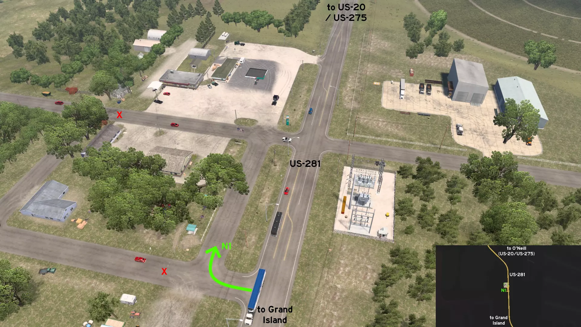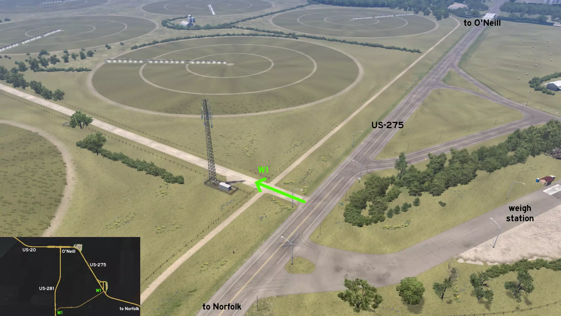 在格兰德岛和奥尼尔无名小镇(美国20号、275号、281号公路交汇处)之间,有一个通往服务站的备用入口,就在一座变电站的正对面。