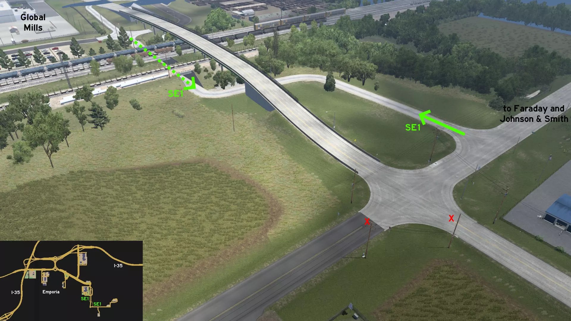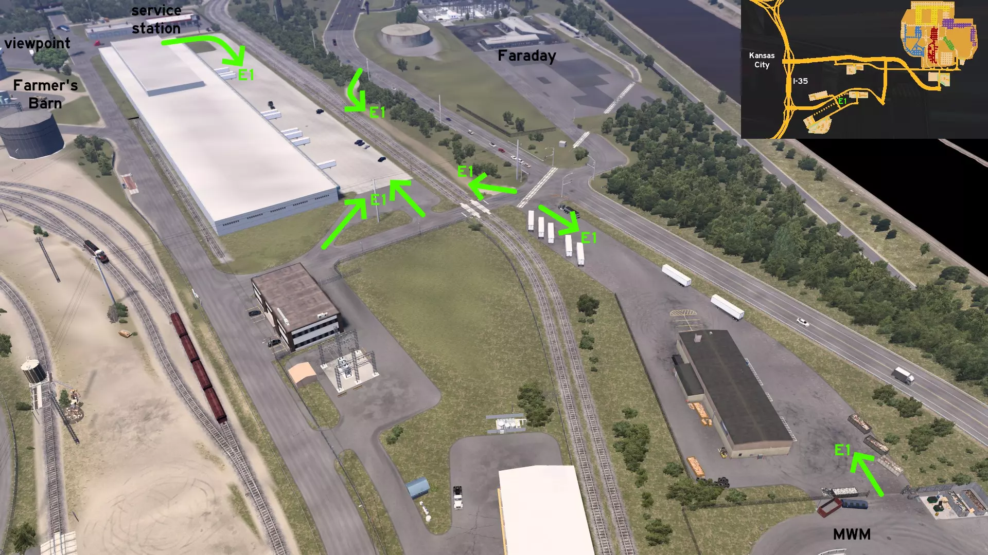 有一条小型服务道路,毗邻城市排水系统,连接着环球磨坊食品厂和法拉第变电站附近的道路。不过,这里似乎不是个安全的驾驶地点……至少当你拖着长长的拖车驶过狭窄弯道时是这样。