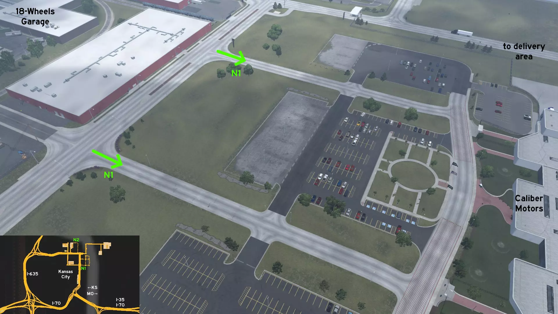 前往堪萨斯城18轮车库以东的口径汽车工厂。在为该公司执行任务前,你可以先去那里看看。不过要小心,那里的停车场不适合卡车停放。