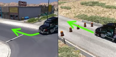 绿色:道路上没有任何UI路障(发光箭头或仅供AI驾驶员通行的X标记)、不可见墙或硬性物体阻挡,只是未在地图上标记。有时只有易于移动的物体(例如锥形路标或指示牌)会挡住道路。你可以毫无问题地通过这些道路——即使它们设有“禁止卡车通行”的标志。在某些情况下,这些道路在被发现后会在地图上标记出来。