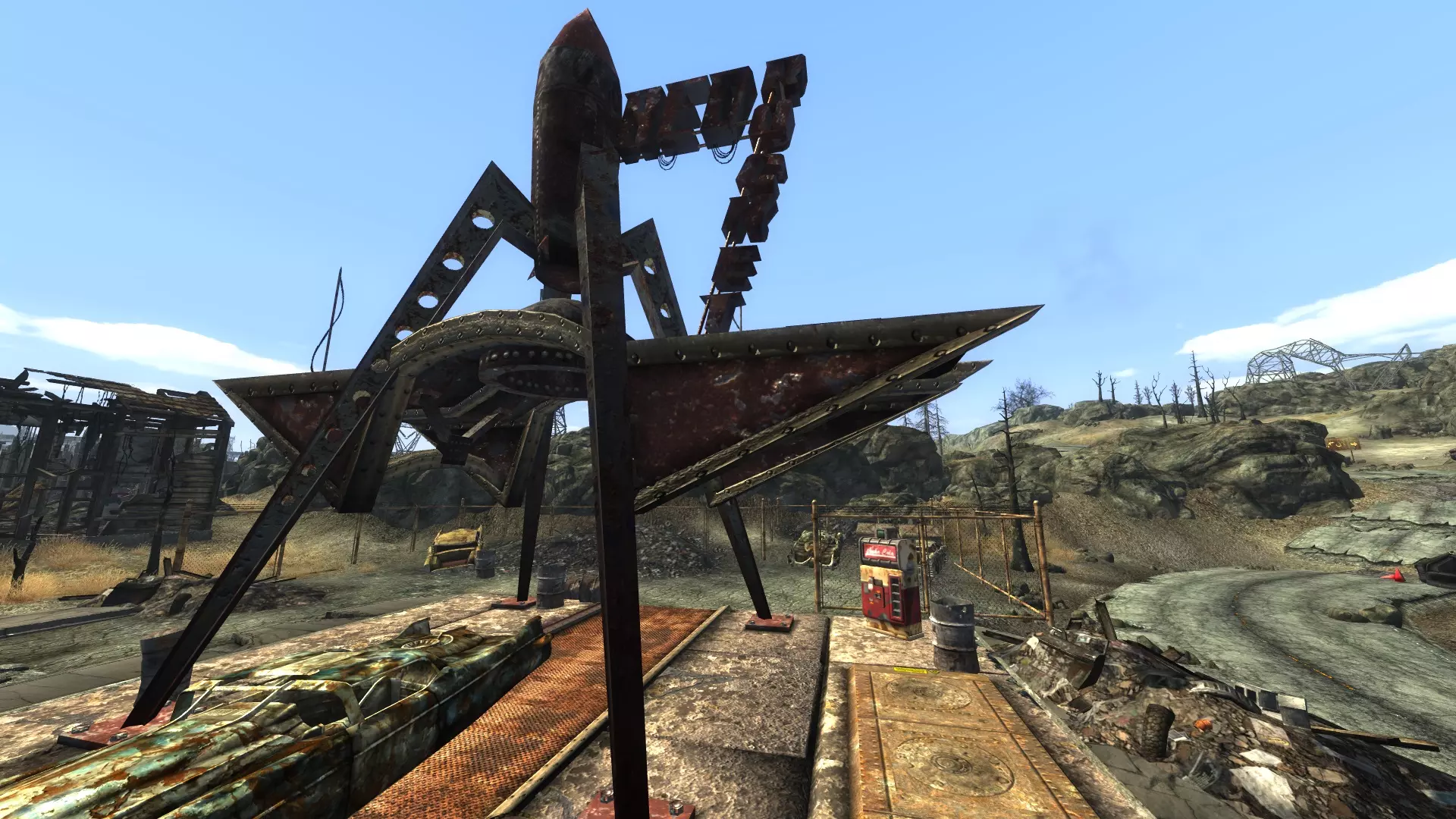 继续穿过南边破损的房屋墙壁,会看到一个红火箭加油站。在巨大的红色火箭下方,有一台核子可乐自动贩卖机,里面有一些核子可乐,无论是卖掉还是用于游戏后期的“核子可乐挑战”任务都很有用。 完成此任务最快的方法是按A到I的顺序依次进行。这里有一个简单的视频展示了这条路线,以及如何快速高效地跑完它。