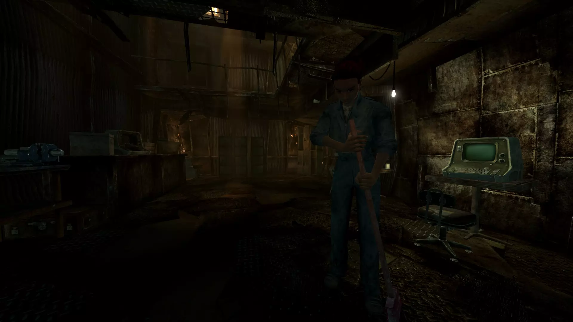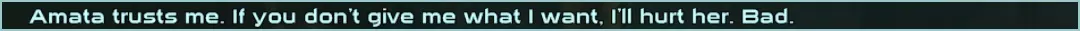 游戏从这里开始变得有趣起来。阿玛塔会将你从睡梦中唤醒,并告诉你父亲不知为何离开了避难所,整个地方都乱作一团。在简短交谈后,她会说自己有办法帮你逃出去寻找父亲。配合她的计划,她会给你一些发夹来帮助你逃脱。之后,她会告诉你她偷了父亲的手枪,并坚持让你带上。选择第一个选项接过手枪和弹药,留待后续使用。 获得控制权后,径直走向桌子,拿走上面的所有物品,以及左侧急救箱和右侧梳妆台里的所有东西。跑出房间向右走,你会看到肯德尔警官正在与一些辐射蟑螂战斗。用球棒击杀肯德尔(以节省弹药),用拳头消灭蟑螂(以保持球棒完好),然后搜刮他们身上的所有物品。确保装备上肯德尔的保安护甲和头盔。 继续沿着走廊前进,你会遇到布奇,他恳求你帮助他被辐射蟑螂袭击的母亲。反正我们最终都要杀掉他们俩,所以选择是否“帮助”他都无关紧要。对话结束后,杀掉布奇、他的母亲以及蟑螂,然后搜刮他们身上的所有物品,还有地上的几瓶伏特加。 继续前进,你会经过餐厅。无视“闪光奶奶”,进去杀掉辐射蟑螂并搜刮它们的肉,然后退出来继续上楼,在那里你会遇到戈麦斯警官。考虑到戈麦斯是101号避难所里比较友善的警卫之一,他会让你自由行动,你可以选择放过他,或者为了他的 armor(护甲)和 baton(警棍)还是杀了他。 到现在你可能已经听到背景中安迪正在对付更多蟑螂的声音了。跑过去帮他杀掉剩下的蟑螂。无视左边的房间,继续向前走到中庭。你会看到玛丽和汤姆·霍尔登跑向通往避难所入口的门,结果被两名警卫开枪打死。装备上监督者的10毫米手枪,用它杀死奥布莱恩警官和理查兹,并拿走他们的装备。沿着楼梯前往上层,沿途消灭辐射蟑螂并搜刮它们。 你最终会进入系统室。消灭这里的蟑螂,然后搜刮弗洛伊德·刘易斯的尸体、他旁边的工具箱以及辐射蟑螂。进入管理区后,消灭并搜刮巡逻的保安队长汉农,接着打开门,里面是监督者和麦克警官将阿玛塔劫为人质的地方。麦克警官会一见到你就发起攻击,所以先解决他。你可以选择是否杀死监督者来获取他身上的几瓶治疗针。作为阿玛塔的父亲,如果你杀了他,她显然会不高兴。若想不杀他就拿到他终端机的钥匙和密码,可以选择以下对话分支: