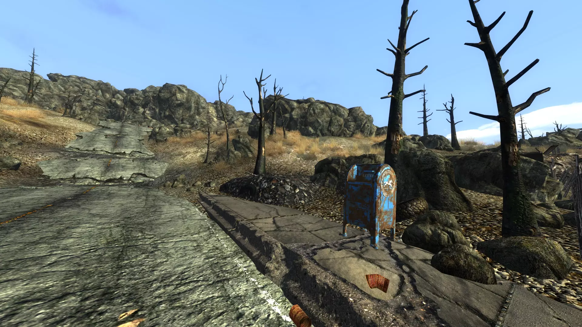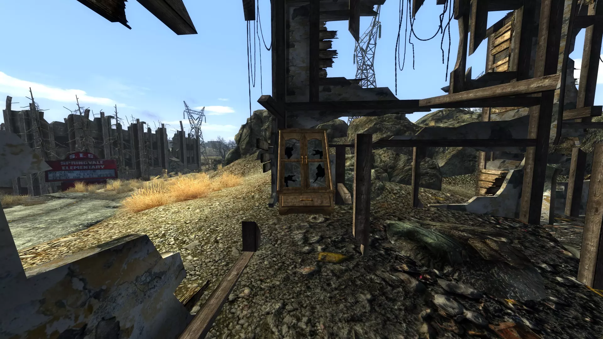 沿着道路前行,经过邮箱,你就能找到春之谷。这会将其标记在你的地图上,使你可以从废土的任何地方快速旅行到这里,同时还能获得10点经验值。 C – 柜子