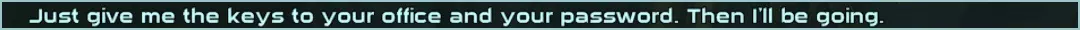 要开始这个任务,你需要在兆吨镇找到两盘全息磁带中的一盘,要么在弹坑边补给站,要么在诊所。在弹坑边补给站,全息磁带就在入口右侧,柜台后面的凳子上,旁边放着一把手枪和一瓶威士忌。在诊所里,全息磁带位于里屋,终端机和其他医疗用品旁边。一旦你拿起其中一盘全息磁带并收听,“复制人”任务就会开始。 7. 追随他的脚步 任务概要 - 从柜子里窃取终端密码 - 在莫里亚蒂的终端机上查找关于父亲的信息