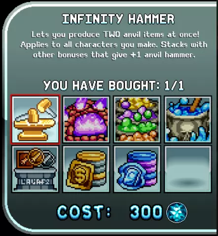 铁匠铺 - 用于将矿石重铸成金属锭。 初期阶段你无法维持其生产,但应努力让它持续运作。 拥有一名矿工角色会很不错。战士职业的角色最擅长此事。 此外,可使用在商店购买的润滑油来加快矿石加工速度。铁匠铺的升级中,以下几项提升十分实用: • 新的铁匠铺槽位; • 增加槽位的最大矿石数量; • 矿石加工速度。