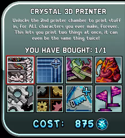 另一项必要的购买是花费875宝石的打印机,它能让你获得的怪物资源翻倍。