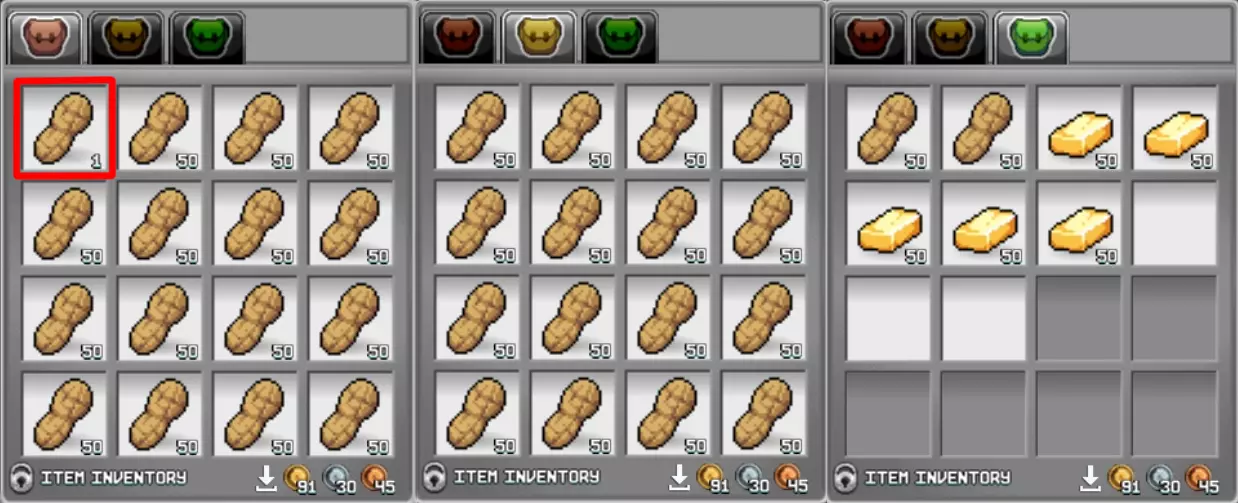 • 1651个花生(制作需消耗3302个热狗、1651个桦木原木和1651个铜矿); • 250个金锭。 制作花生和金锭后,将1个花生从箱子转移到背包的单独栏位中。(我们将用它来开始任务)