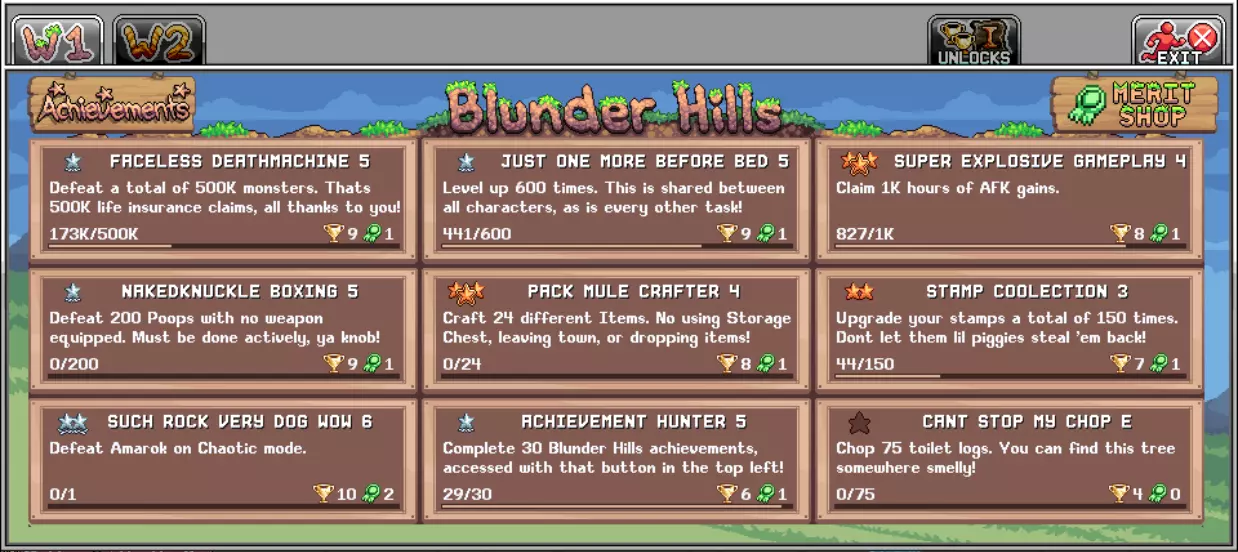 草原加里 达到11级即可解锁该NPC。 完成任务可在“解锁”(UNLOKS)选项卡中解锁配方。 右下角的任务为每日任务,建议每天完成。 在“功勋商店”(MERIT SHOP)中可购买各种世界加成道具: • 尽可能购买阿马罗卡套装的配方; • 至少购买1点“特殊天赋书”点数。(世界1的小Boss掉落新星级天赋的概率提高); • 稍后可购买更多等级的Goblet of Hemoglobin(最多可升至5/10级); • 背包是最低优先级,但对许多角色都有用。