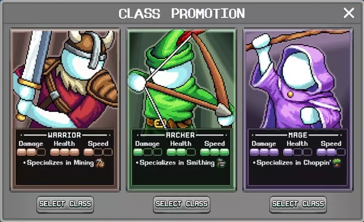游戏中有3个主要角色职业,其中一个职业你可以通过完成位于第一世界“Valley Of The Beans”区域的NPC发布的简单任务来获取。 我建议你创建每个职业的角色。 接下来,为你介绍每个职业的能力以及各自的优势: - **战士**:矿石采集者。每次攻击都能用职业武器同时攻击多个敌人。• 力量属性可提升战士造成的伤害,以及采矿效率和其他战士专精技能的效果。 • 智慧属性可提升精准度。猎人-铁匠:初始战斗能力最弱的职业,但却是从怪物身上获取资源的主要角色,同时也负责为其他角色打造盔甲和武器。• 敏捷属性可提升弓箭手造成的伤害、锻造效率以及其他弓箭手专精技能的效果。 • 力量属性可提升精准度。魔法师-樵夫职业拥有最高的攻击属性,但防御属性最低。 • 智慧属性可提升魔法师造成的伤害、伐木效率以及其他魔法师专精技能的效果。 • 敏捷属性可提升精准度。你可以在此处[idleoncompanion.com]找到适用于任何职业在不同游戏模式下的天赋分配方案。 角色的副职业