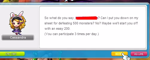 步骤3:开始击杀怪物。 接受任务后,你需要击杀200只与你等级相近的怪物。卡珊德拉(Casandra)也对此进行了尽可能详尽的说明。